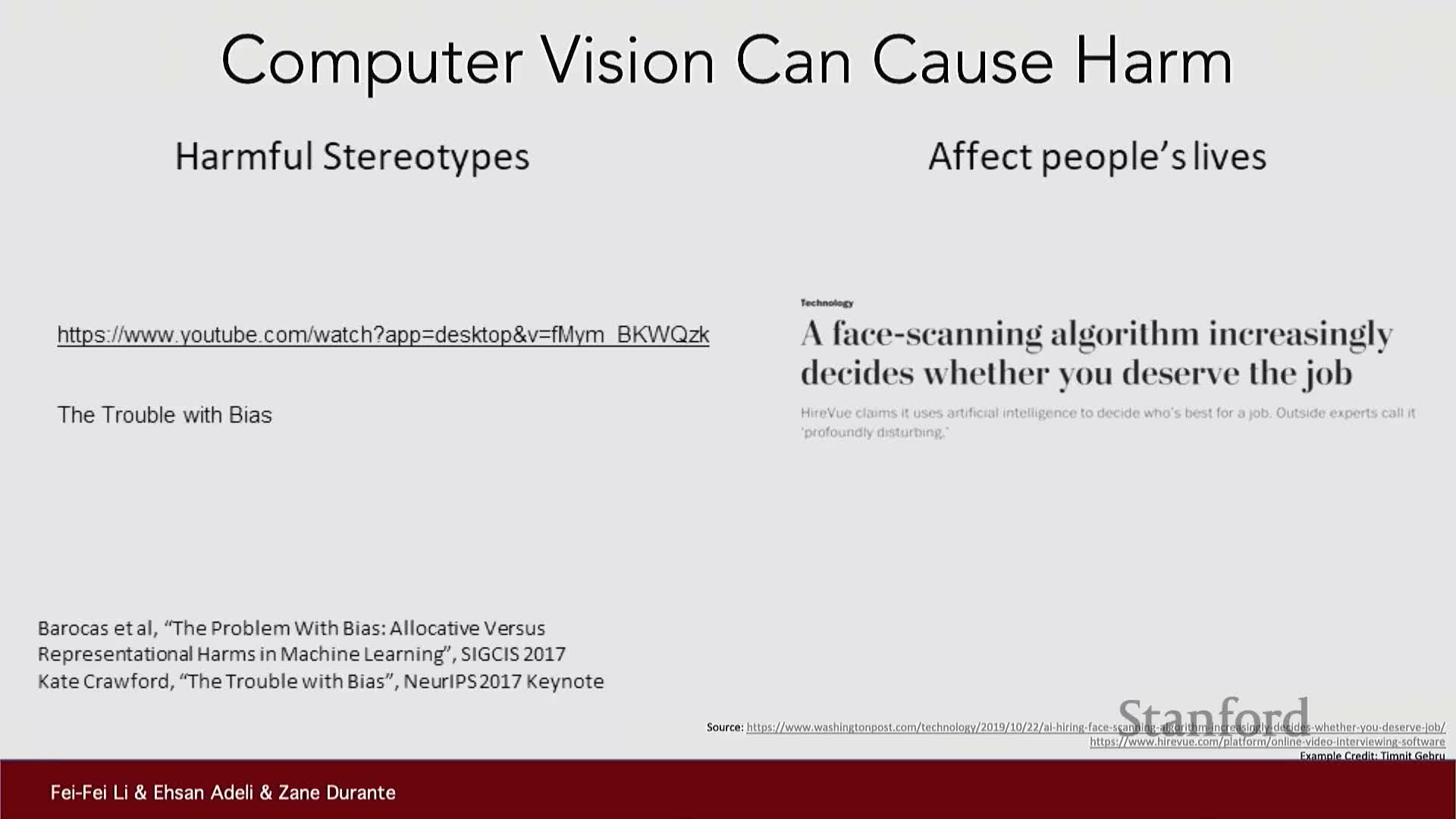 The segment emphasizes that visual AI systems inherit biases from training data and can have major societal impacts.