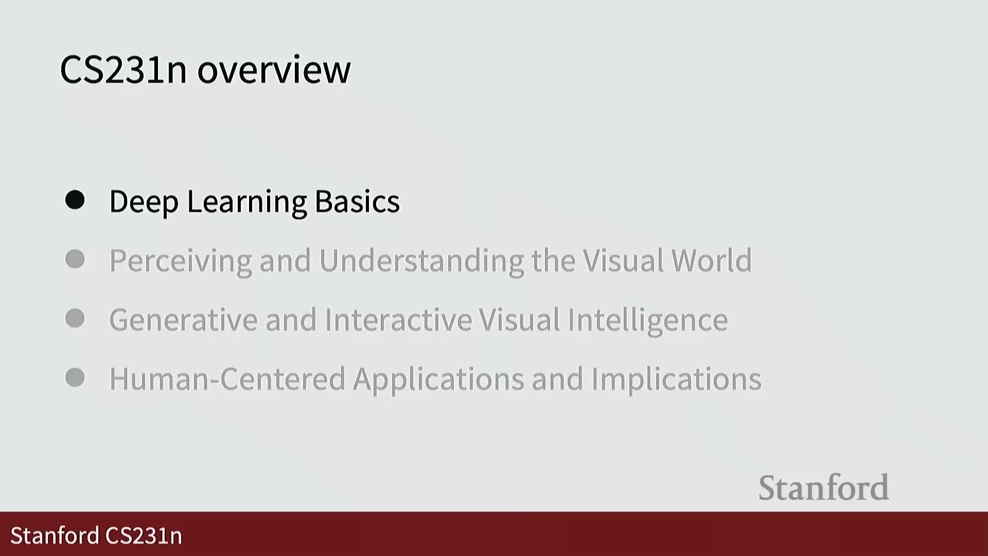 - Students should expect technical material centered on visual recognition, model building, and practical application of deep learning methods.