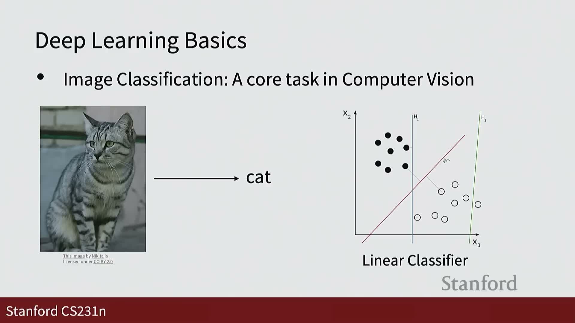 - The segment previews the next lecture topic—image classification and linear classifiers—establishing the immediate technical starting point for the course and framing upcoming lectures and assessments.