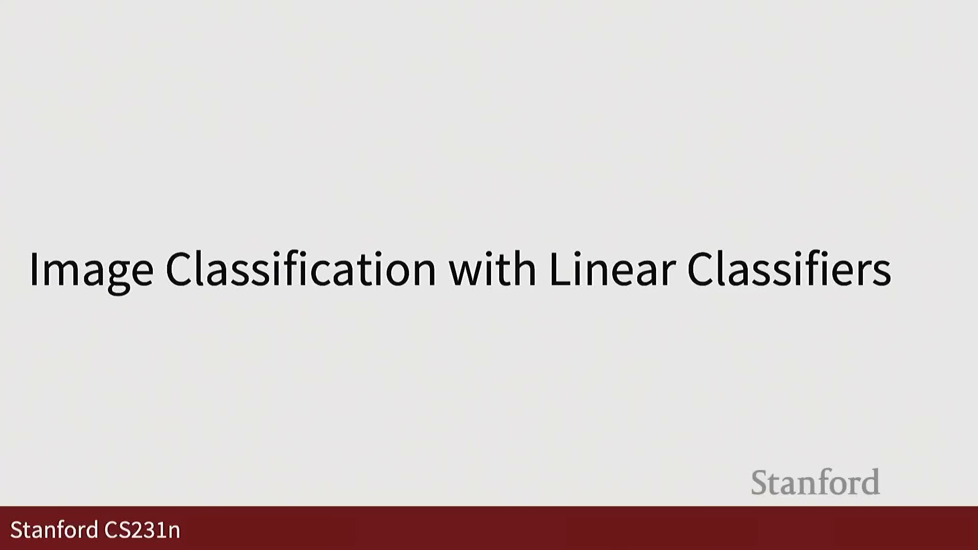 Framing note: linear classifiers are presented as an early building block that will be expanded into more complex models in subsequent lectures. The content builds on the previous session and covers foundations relevant to CS231N.