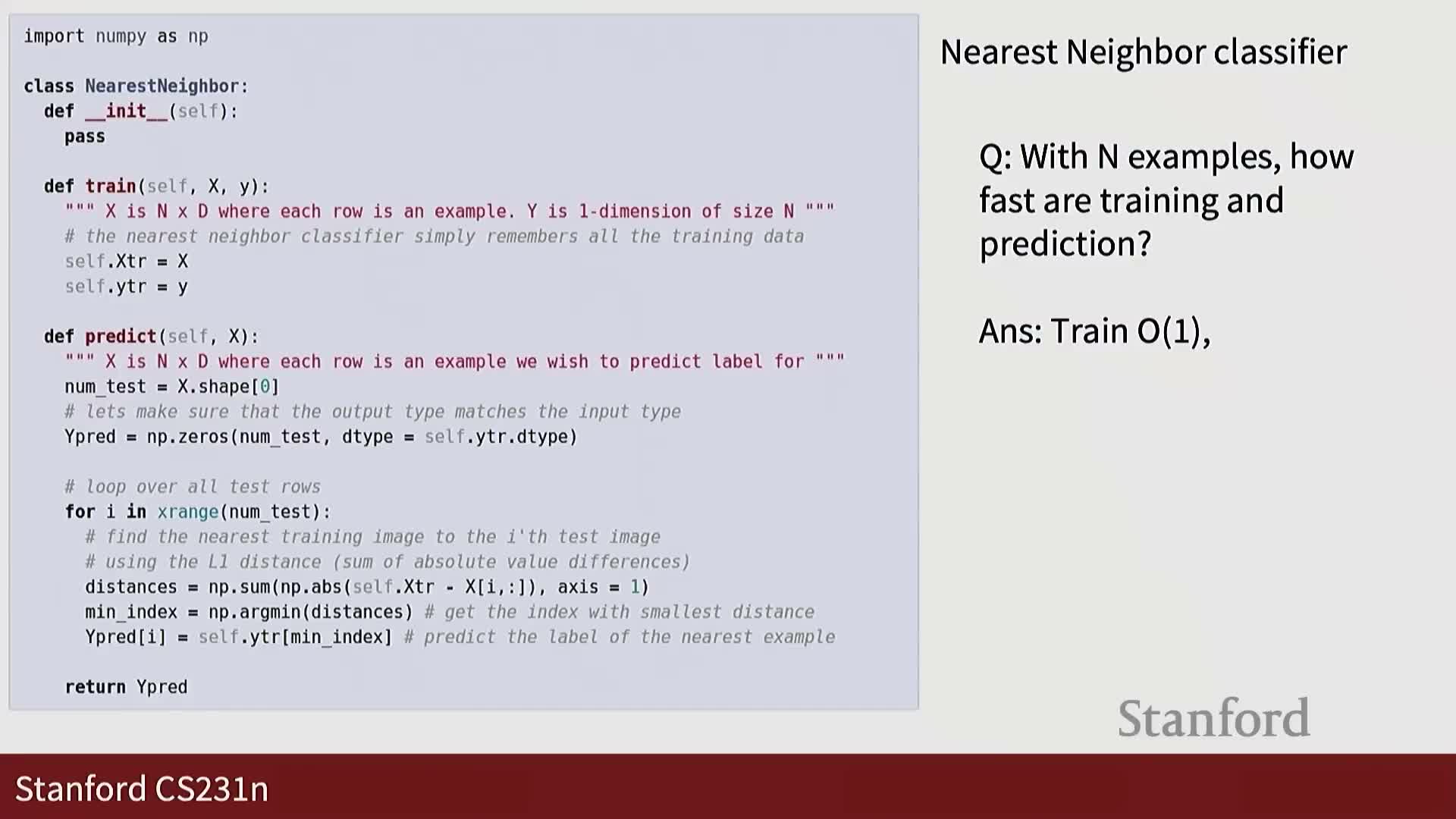 - The training function memorizes labeled examples—no parametric fitting occurs.