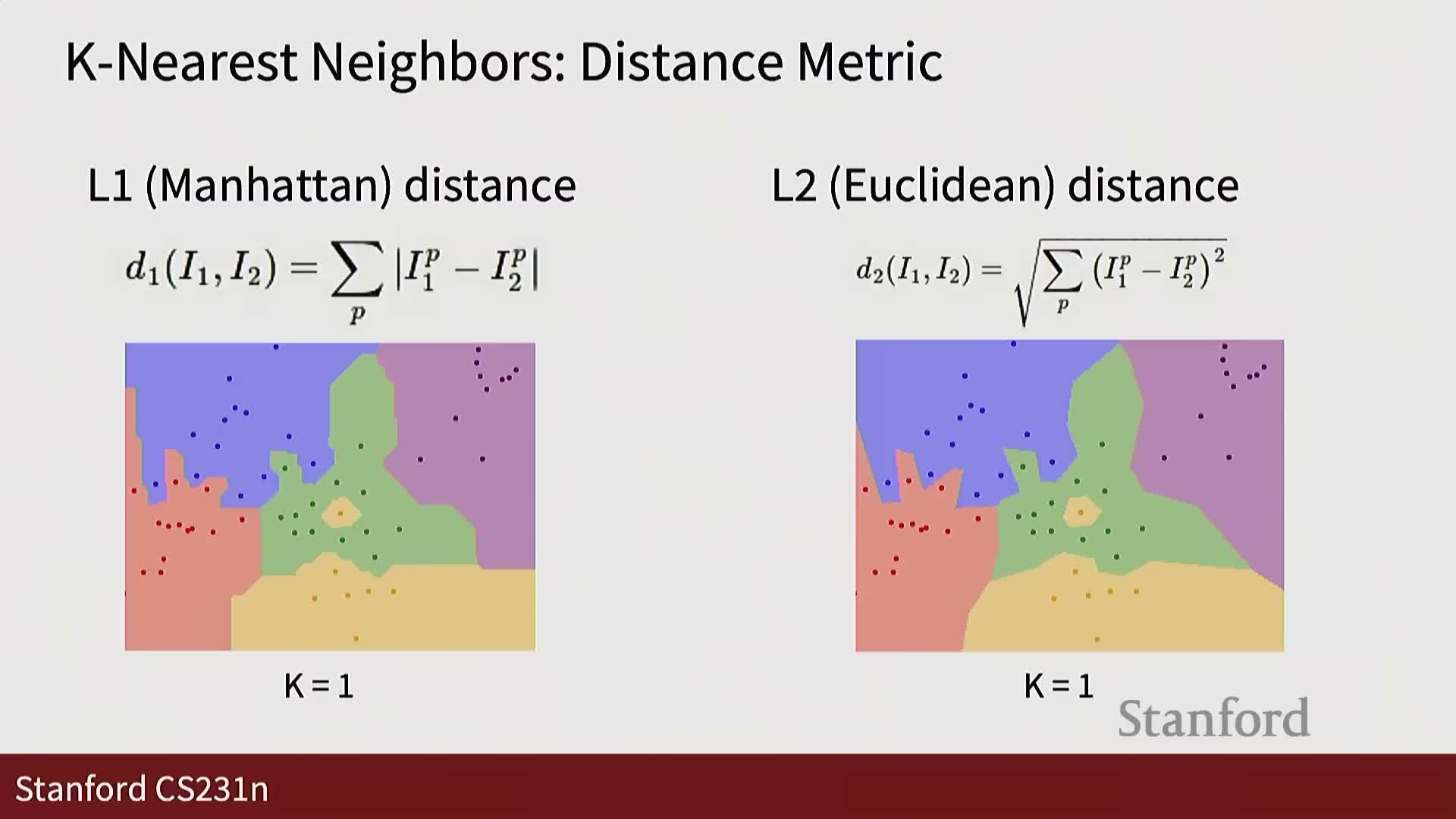 Visualization insight: L1 and L2 yield different partition boundaries in 2D feature space.