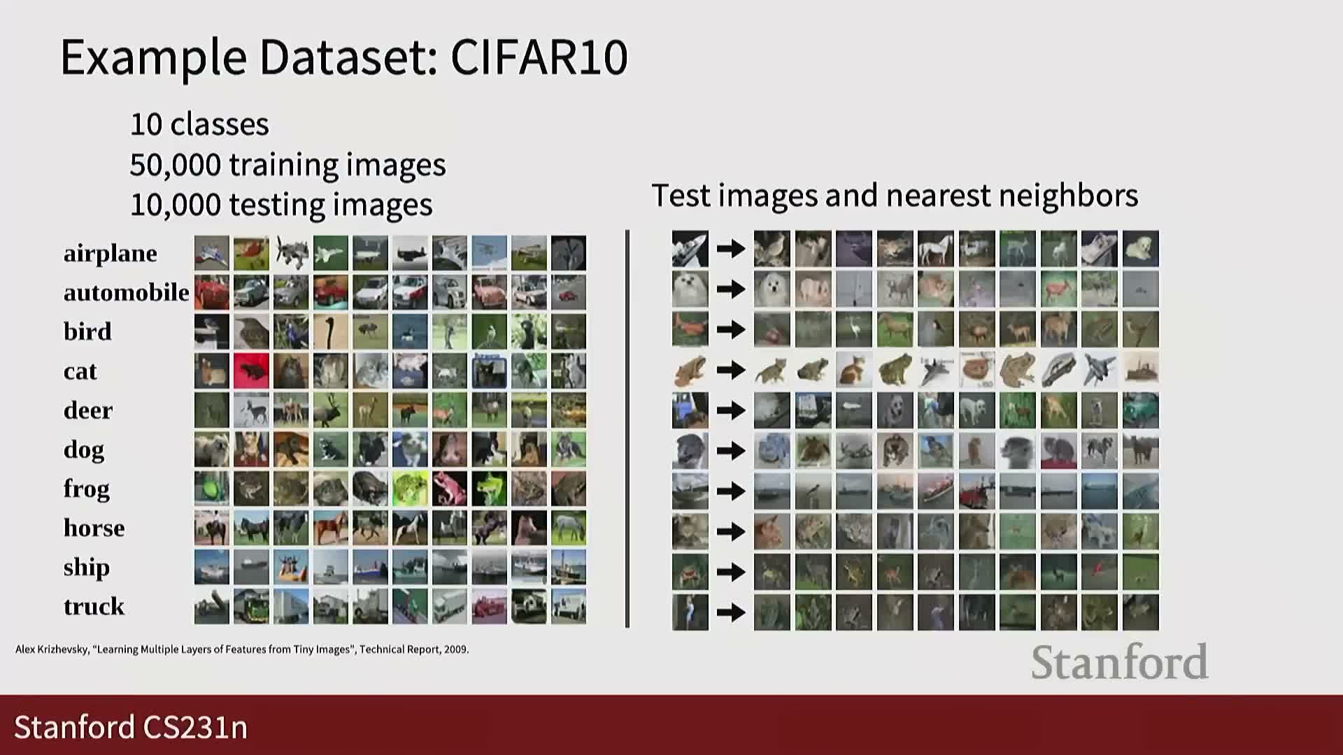 Positioning: CIFAR-10 provides a concrete demonstration of k-NN behavior on a small but realistic vision dataset.