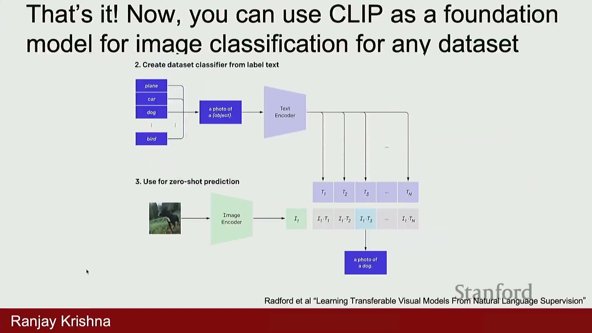 Zero-shot classification via text prompts — embed candidate class descriptions and perform nearest-neighbor retrieval in embedding space.