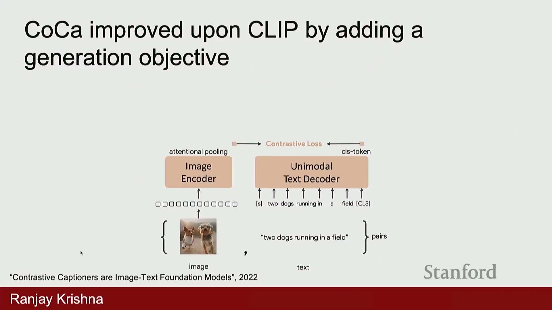 - Extending contrastive alignment with generative captioning decoders (as in CoCa) yields denser supervision because producing full captions forces the model to learn attributes like color, shape and spatial relations.