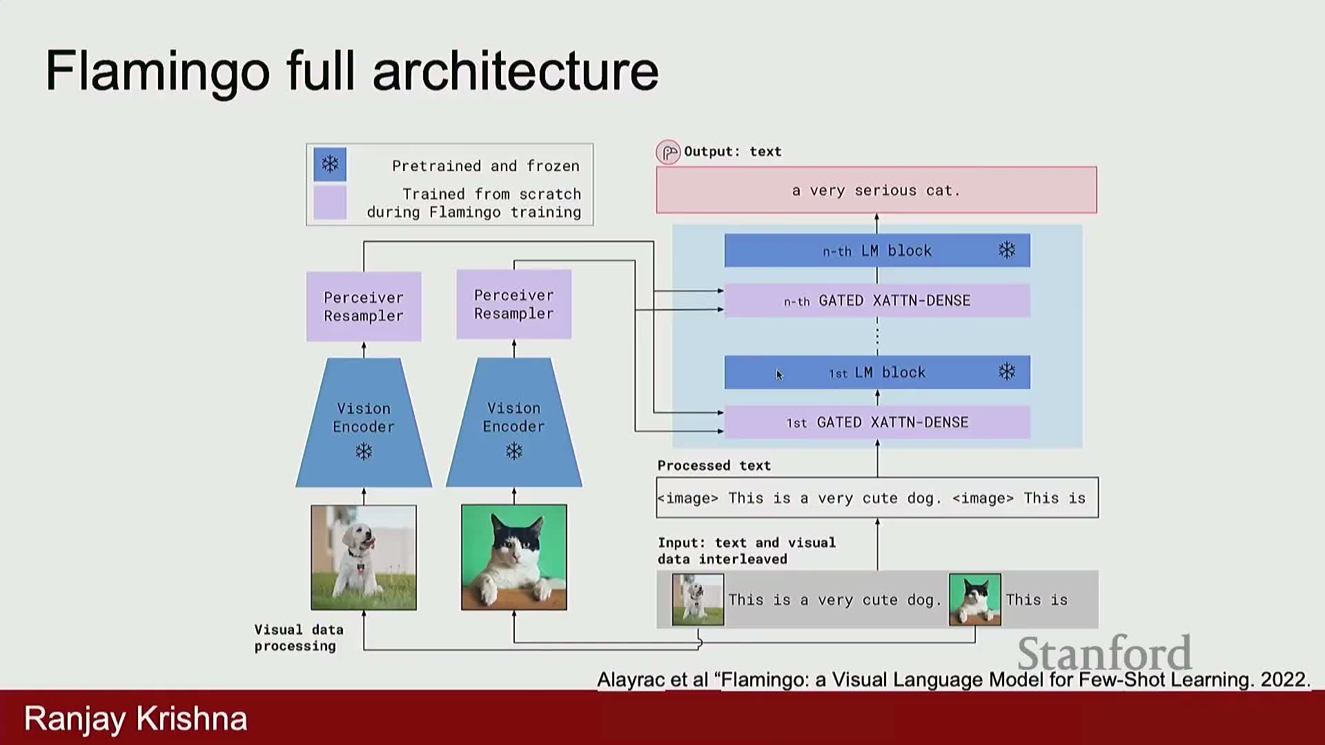 - Flamingo injects vision features into every layer of a frozen LLM using gated cross-attention and a perceiver sampler