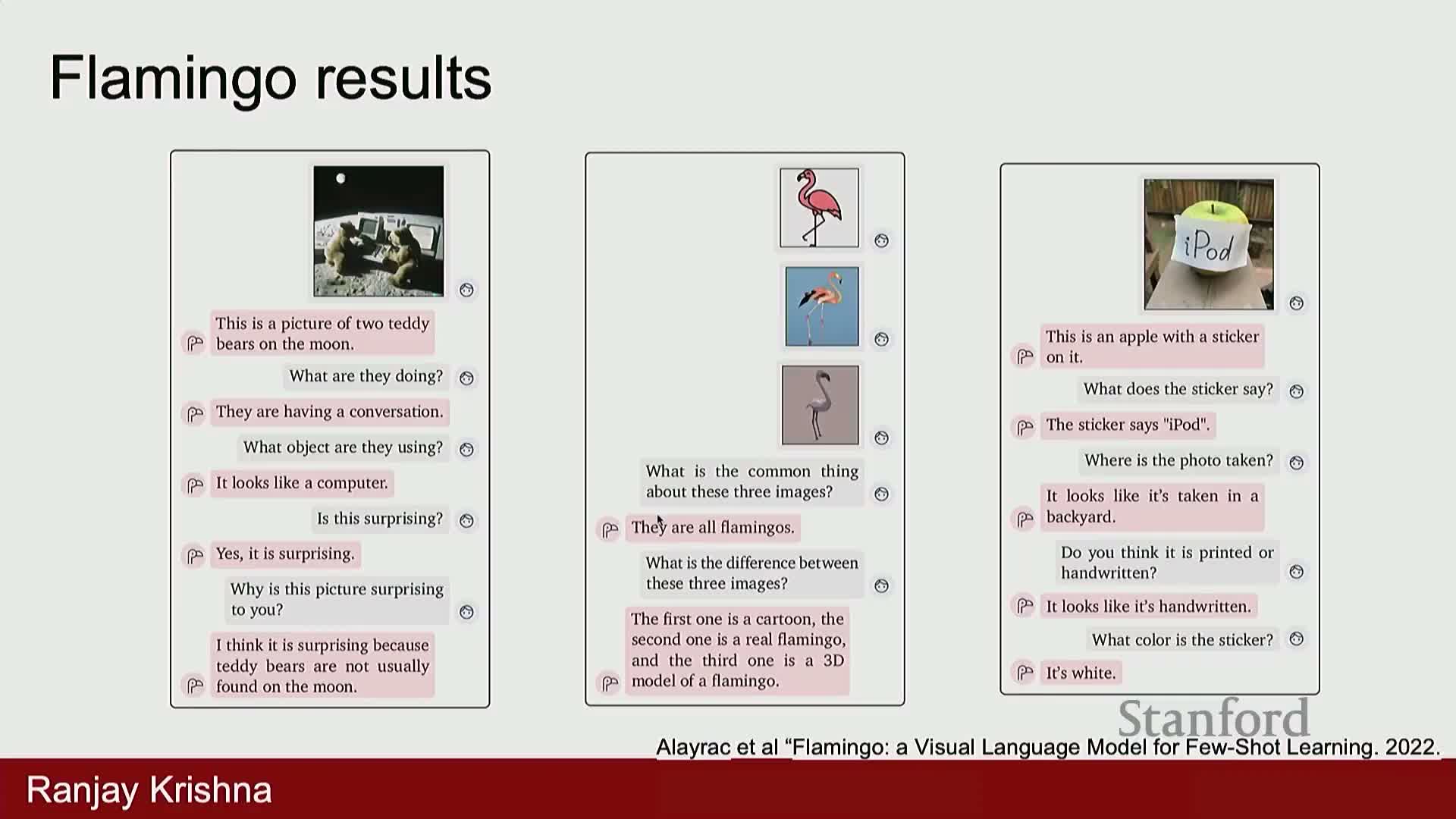 - Enables in-context multimodal learning: providing example image/question–answer pairs in the prompt yields few-shot generalization to new visual tasks and supports multi-turn visual dialogue without task-specific fine-tuning.