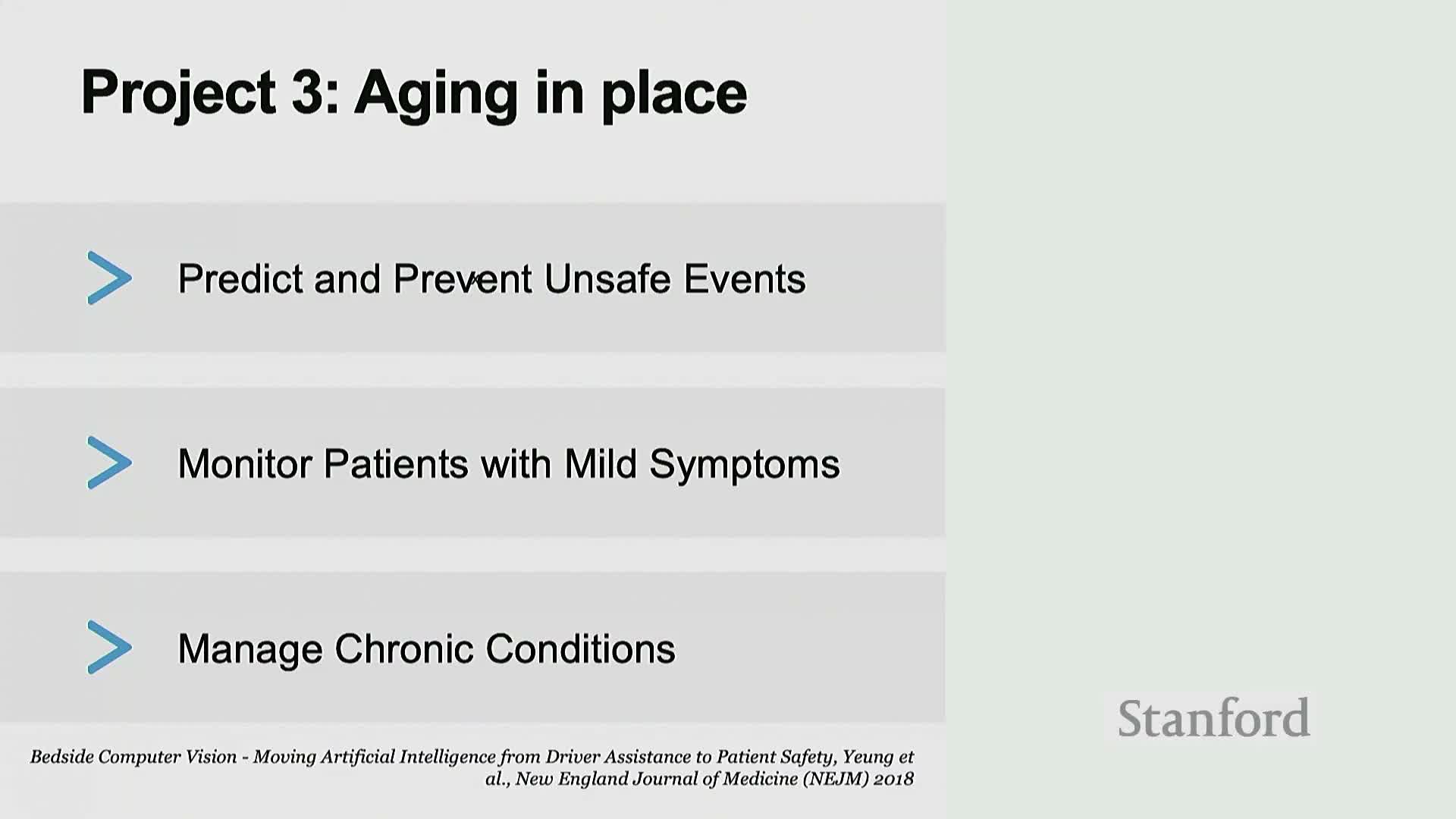 - Smart sensing supports ICU monitoring and aging-in-place use cases but physical assistance requires robotics to close perception-to-action gaps.