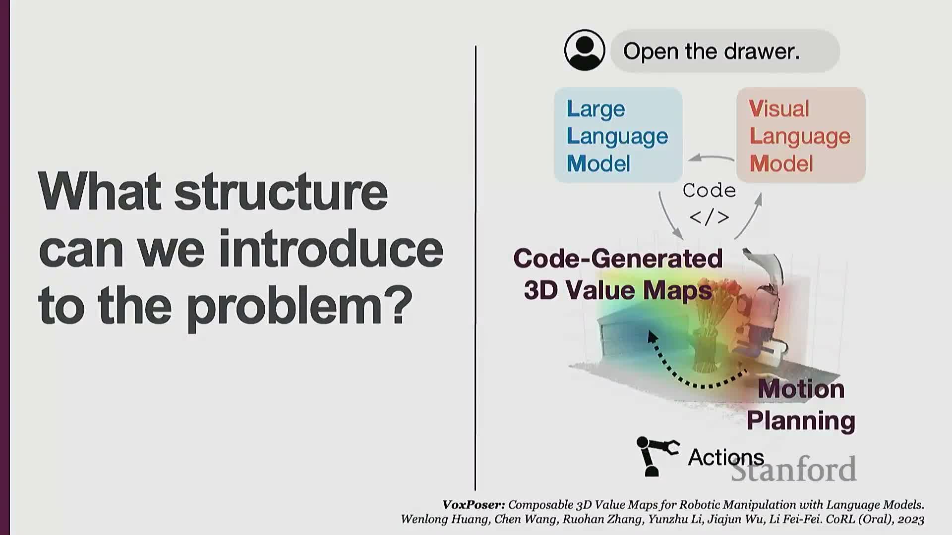 - Map semantic instructions and visual detections into motion-planning representations (e.g., heatmaps) that indicate safe and target regions for manipulators.