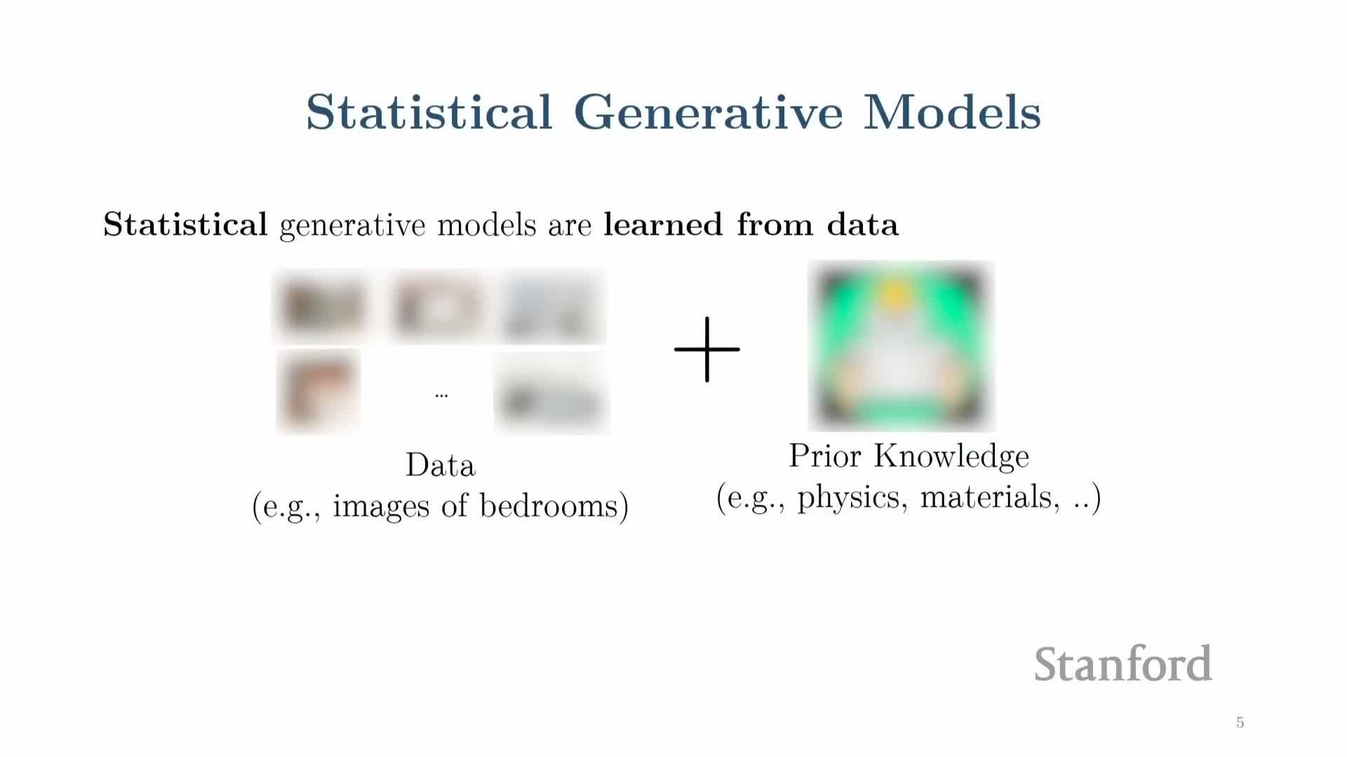 Statistical generative models follow a similar structure by defining latent variables that encode scene or semantic descriptions which, when rendered, produce observable signals.
