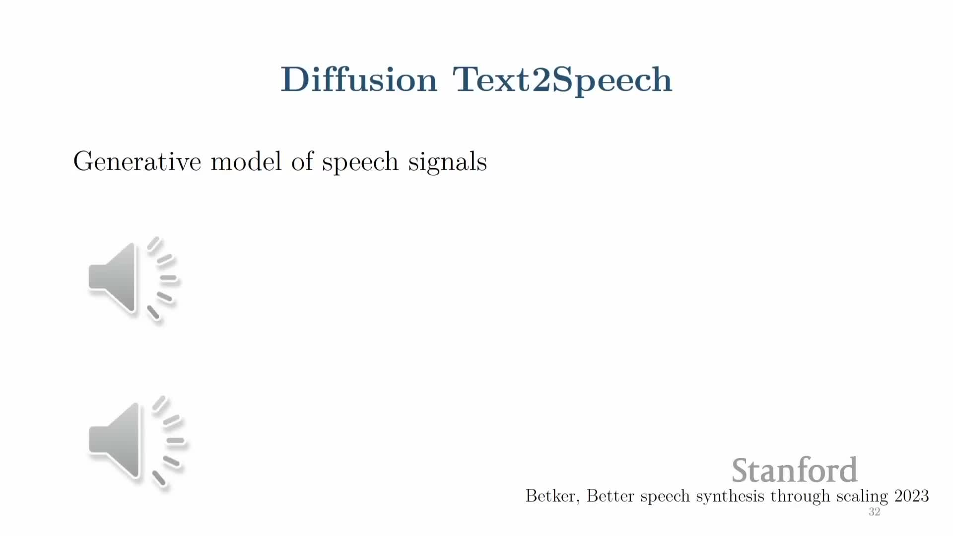 Generative modeling of audio, especially text-to-speech, has progressed from autoregressive waveform models (e.g., WaveNet) to more recent diffusion- and transformer-based systems that produce highly realistic, expressive speech.
