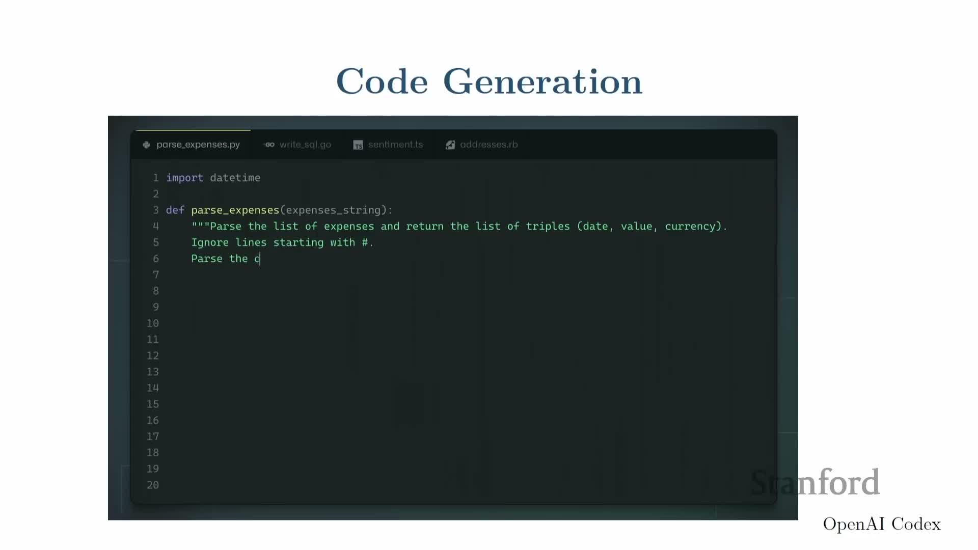 - For code synthesis, language models trained on code can generate syntactically and semantically coherent program fragments from natural-language descriptions, enabling autocompletion and developer assistance.
