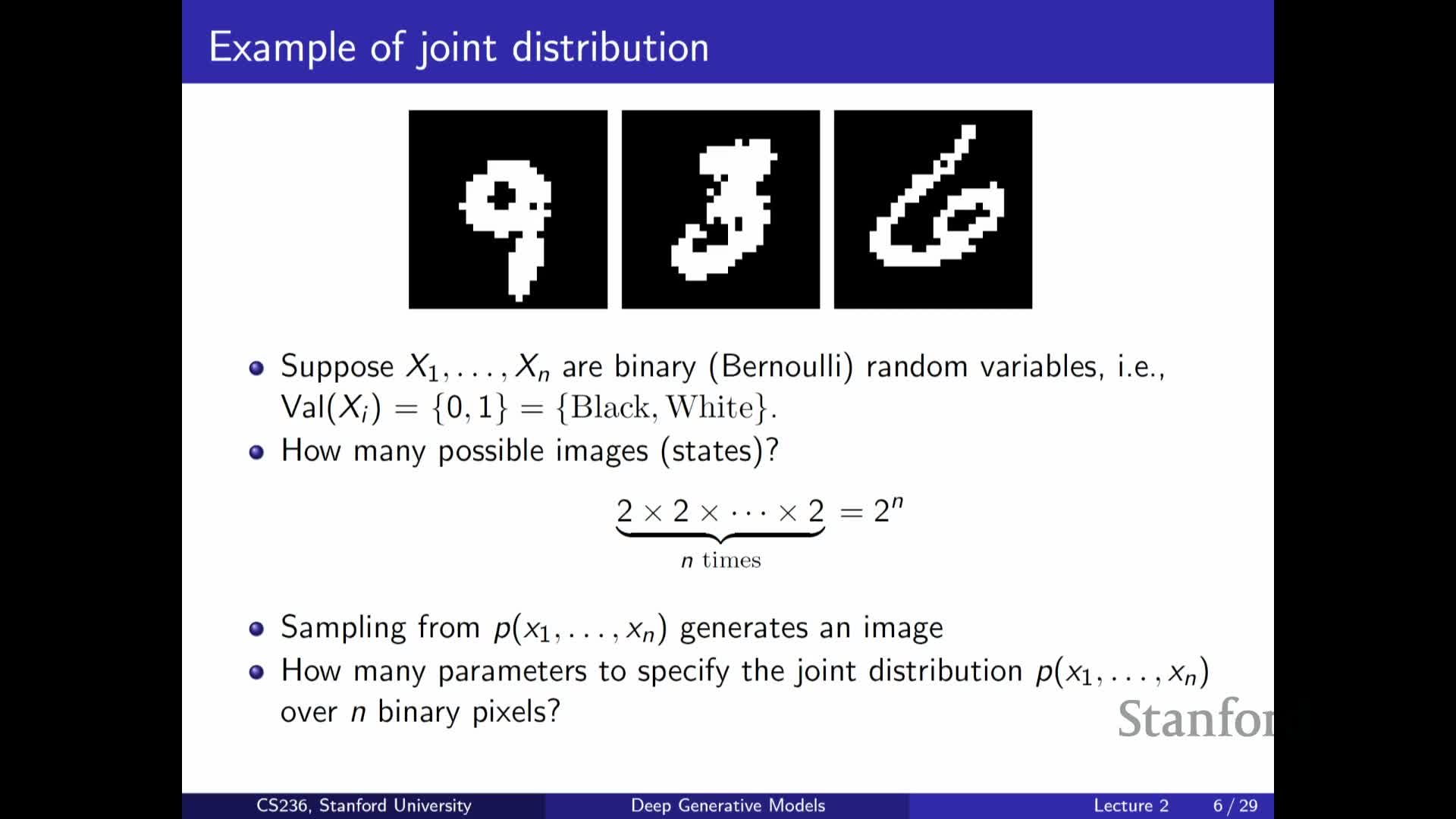 - A full joint over many pixels quickly becomes astronomically large, since a fully general joint requires specifying a probability for every discrete configuration.