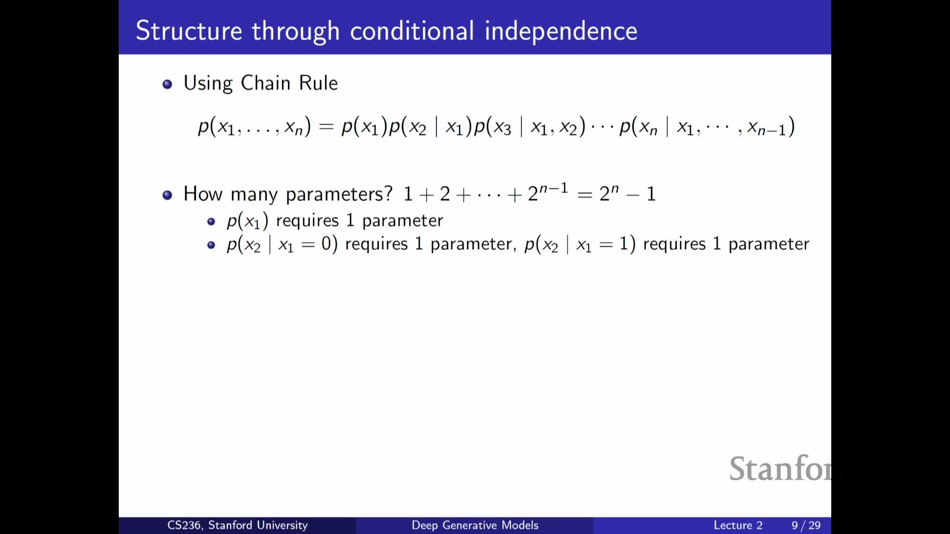 While the chain rule gives a principled decomposition of a complex joint into conditional factors, without further assumptions the conditionals themselves can still be intractably high-dimensional.