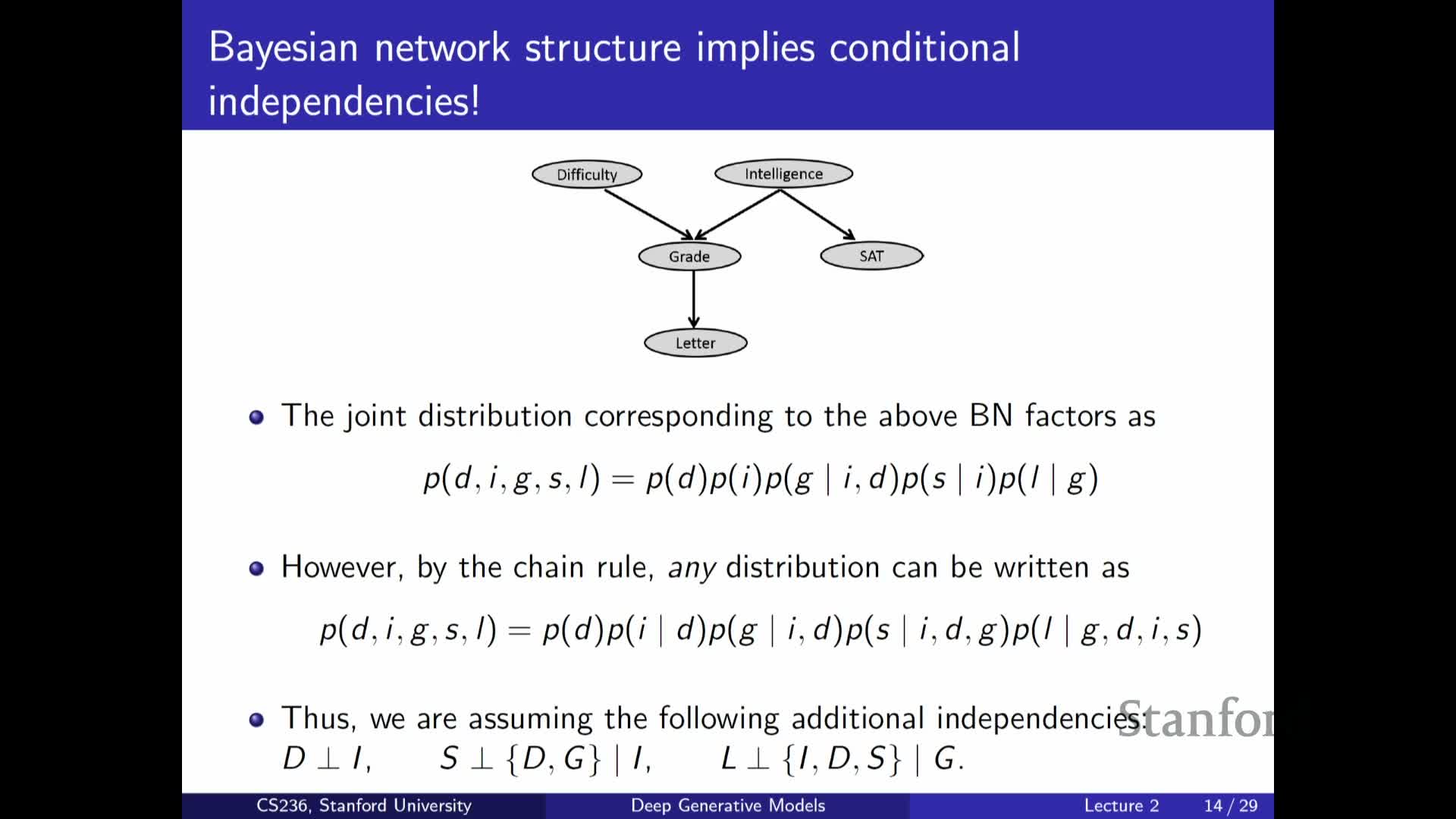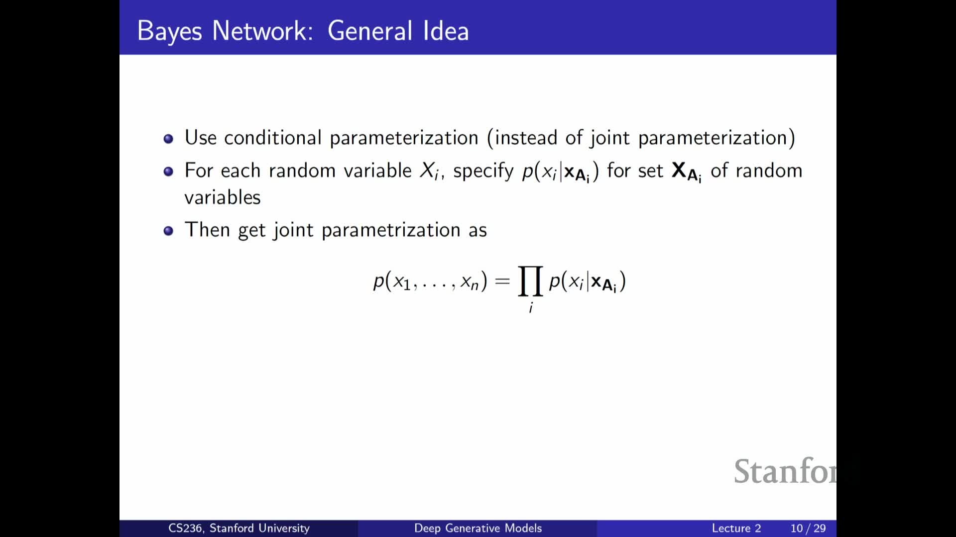 Graphical models (Bayesian networks) are a principled tool to factorize and simplify joints via conditional independence.