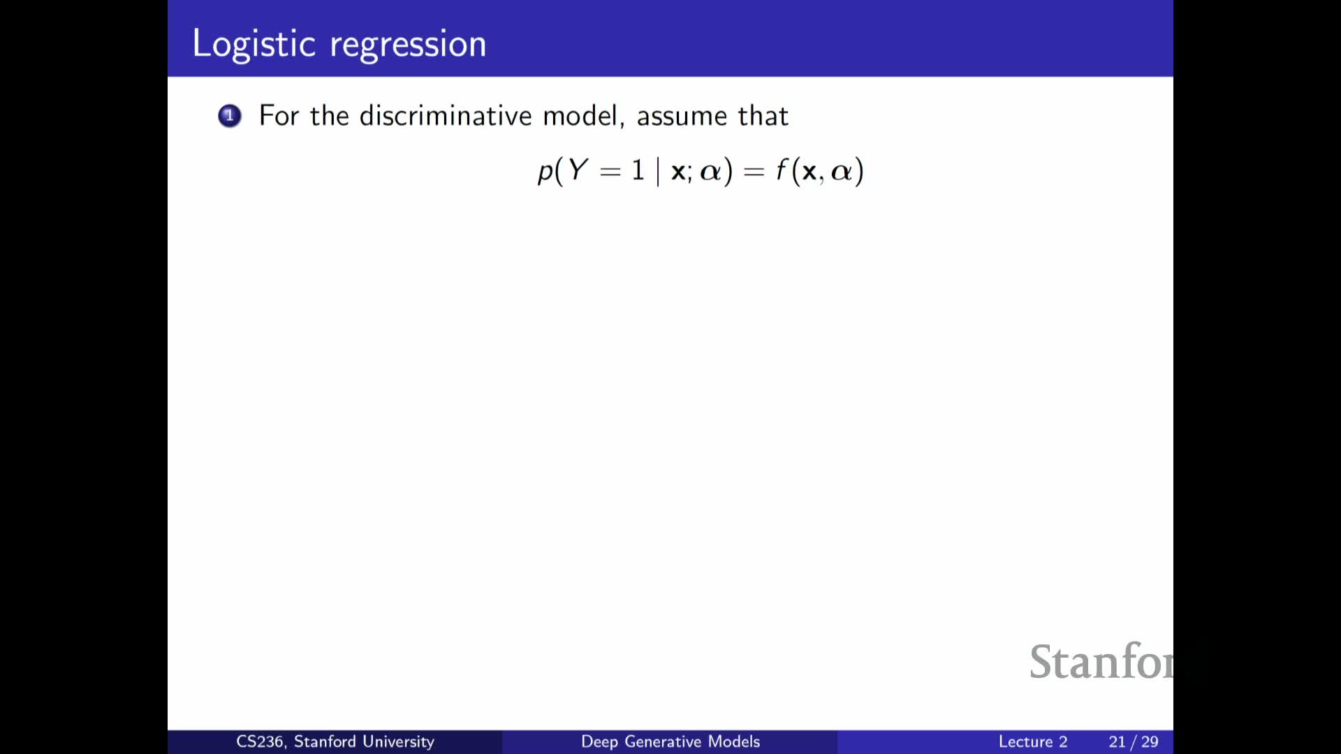 Explains how discriminative models avoid a tabular representation by assuming a functional form for P(Y | X):