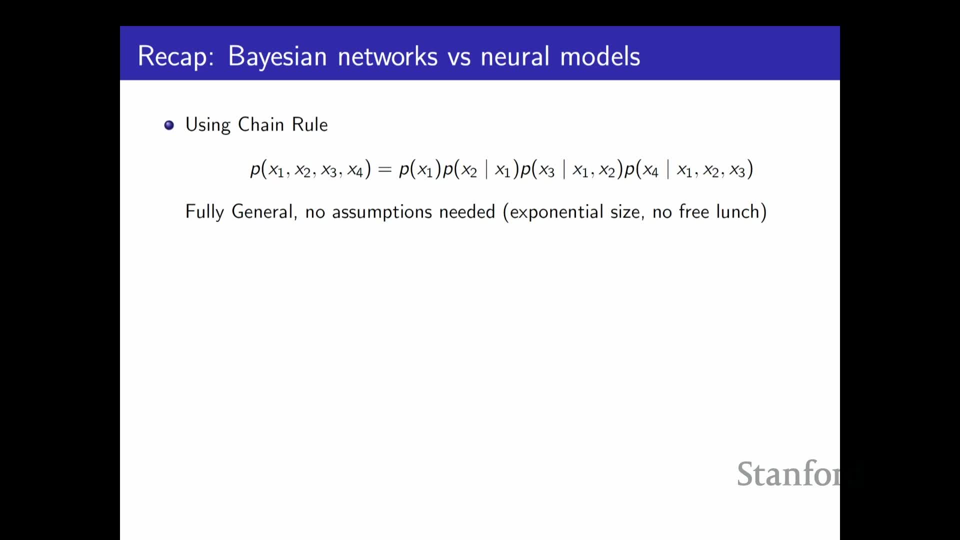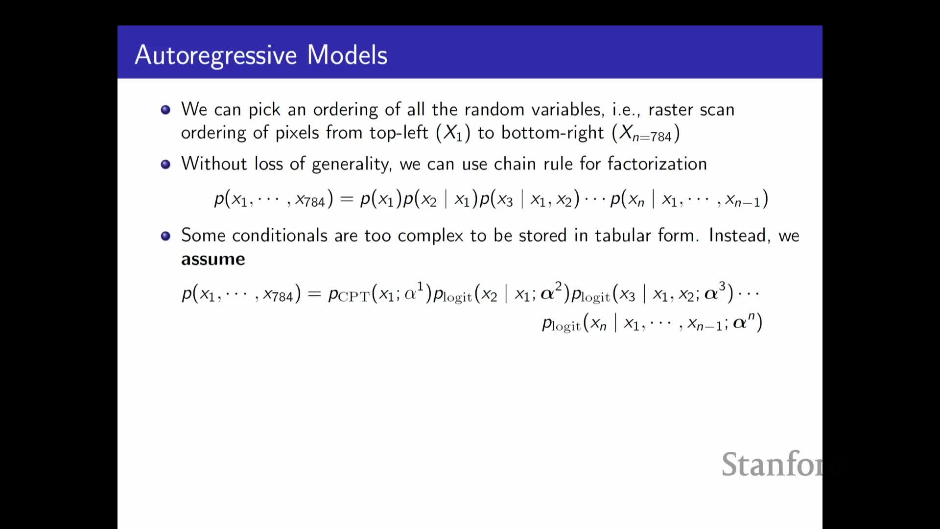 Autoregressive modeling uses neural networks to approximate the chain-rule conditionals: