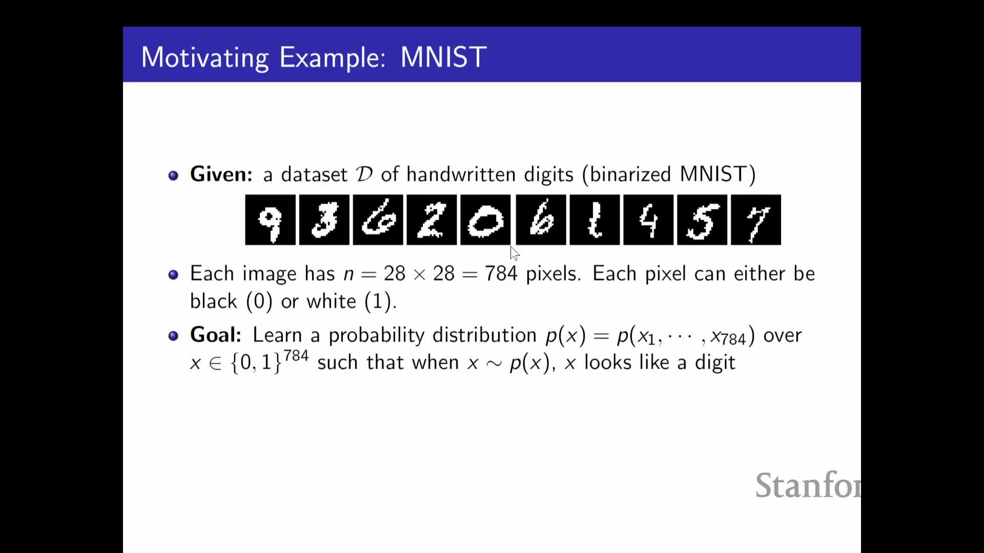- Example: binarized MNIST (28 × 28) yields 784 binary variables.