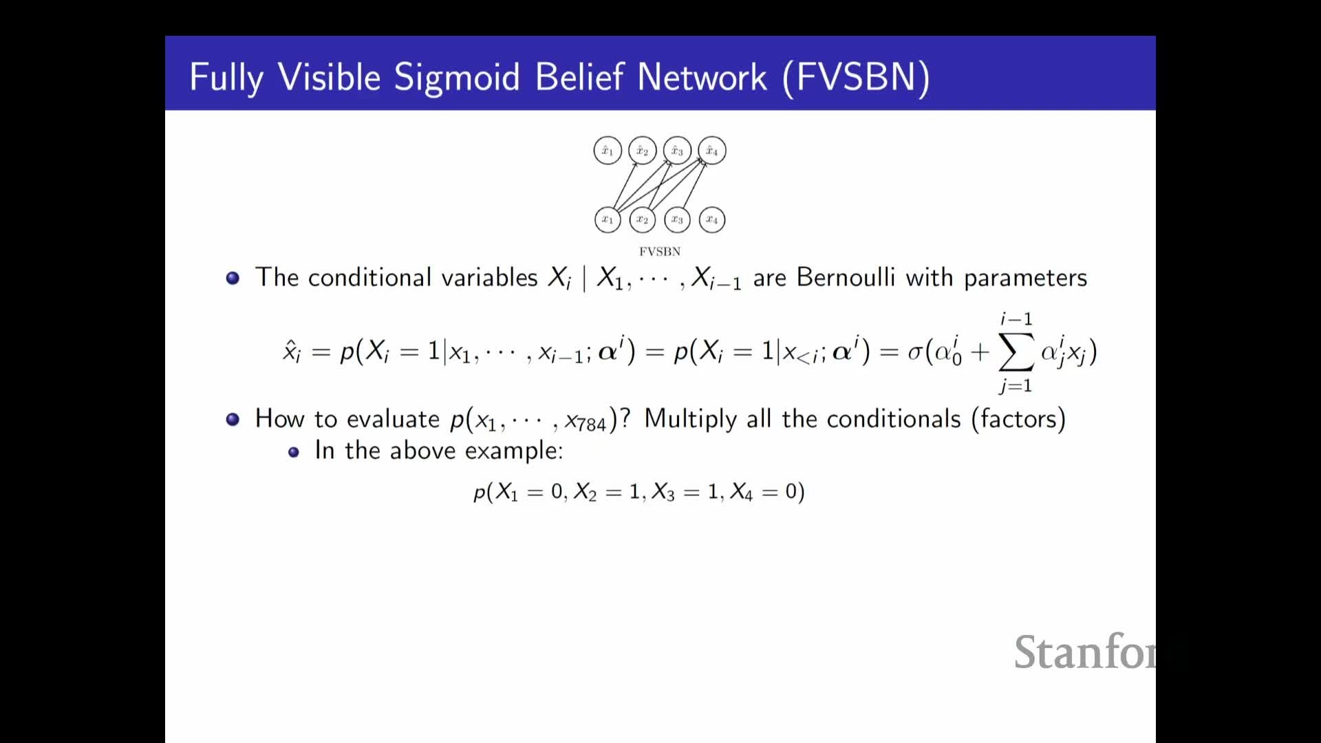 - A naive approach uses independent logistic regressions per conditional, known as the fully visible sigmoid belief network.