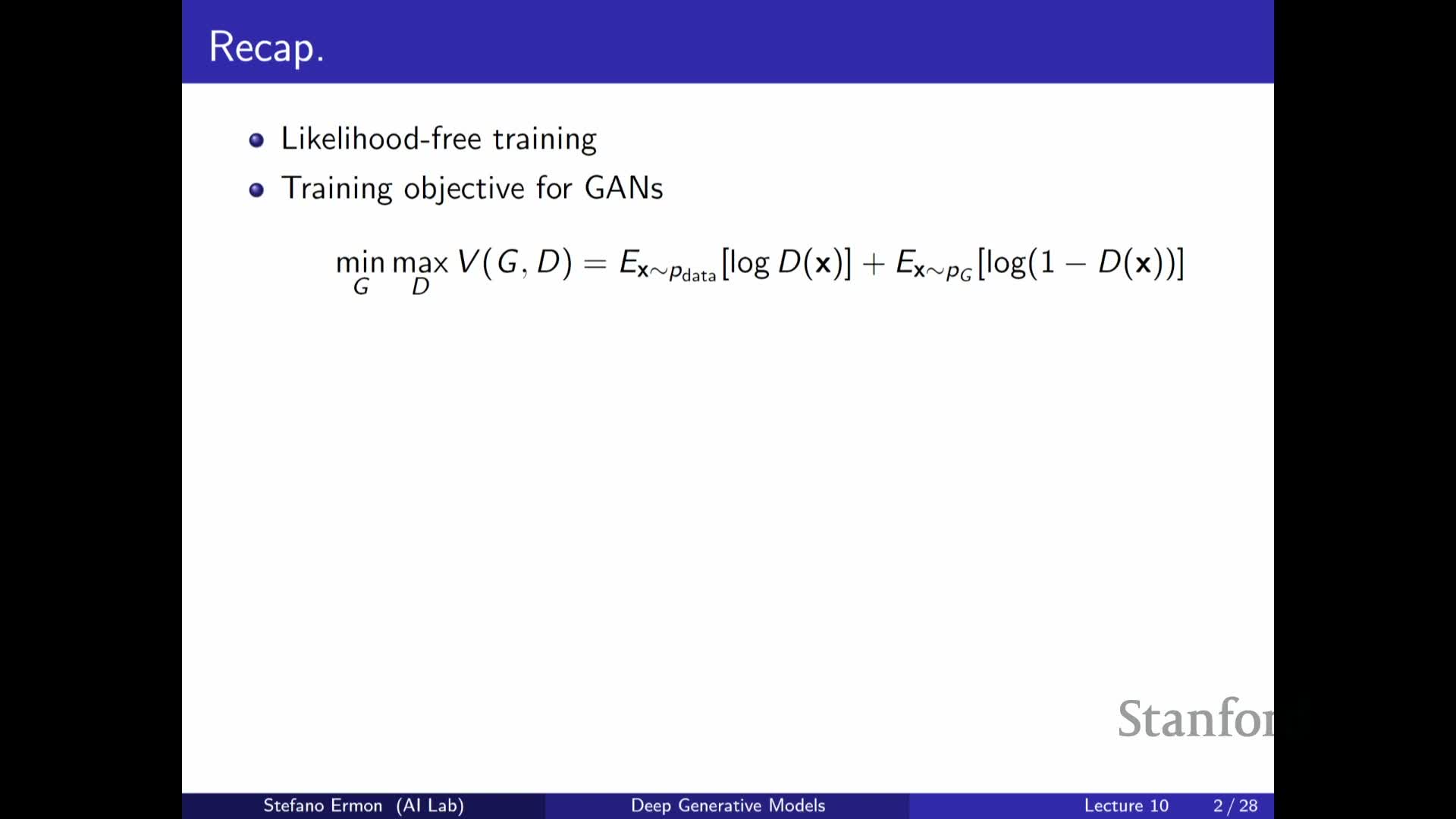 Stanford CS236 - Deep Generative Models I 2023 I Lecture 10 - GANs