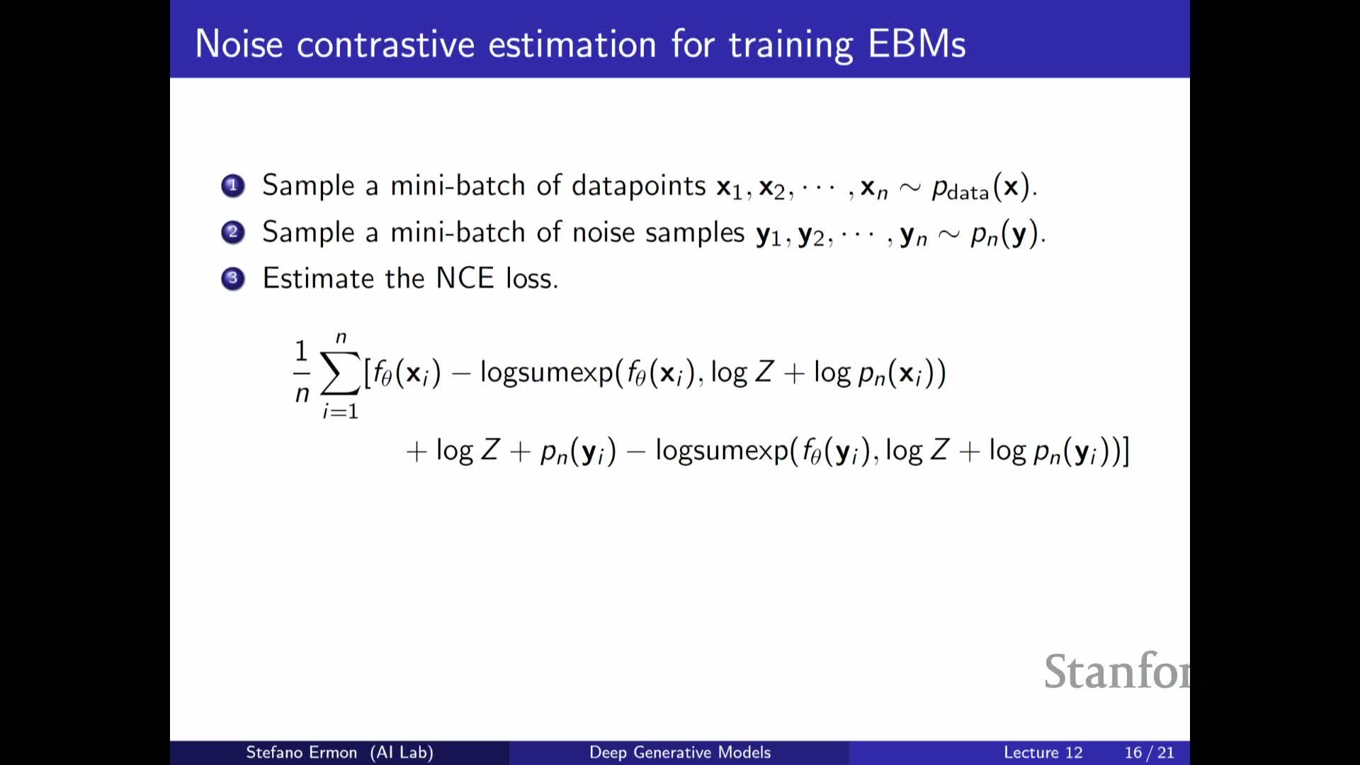 - This approach fits EBMs without generating samples from p_theta. In finite-data or imperfect-optimization regimes the learned z may not equal the true partition function, so the energy and normalization are approximate, but NCE remains a practical, likelihood-free fitting method.