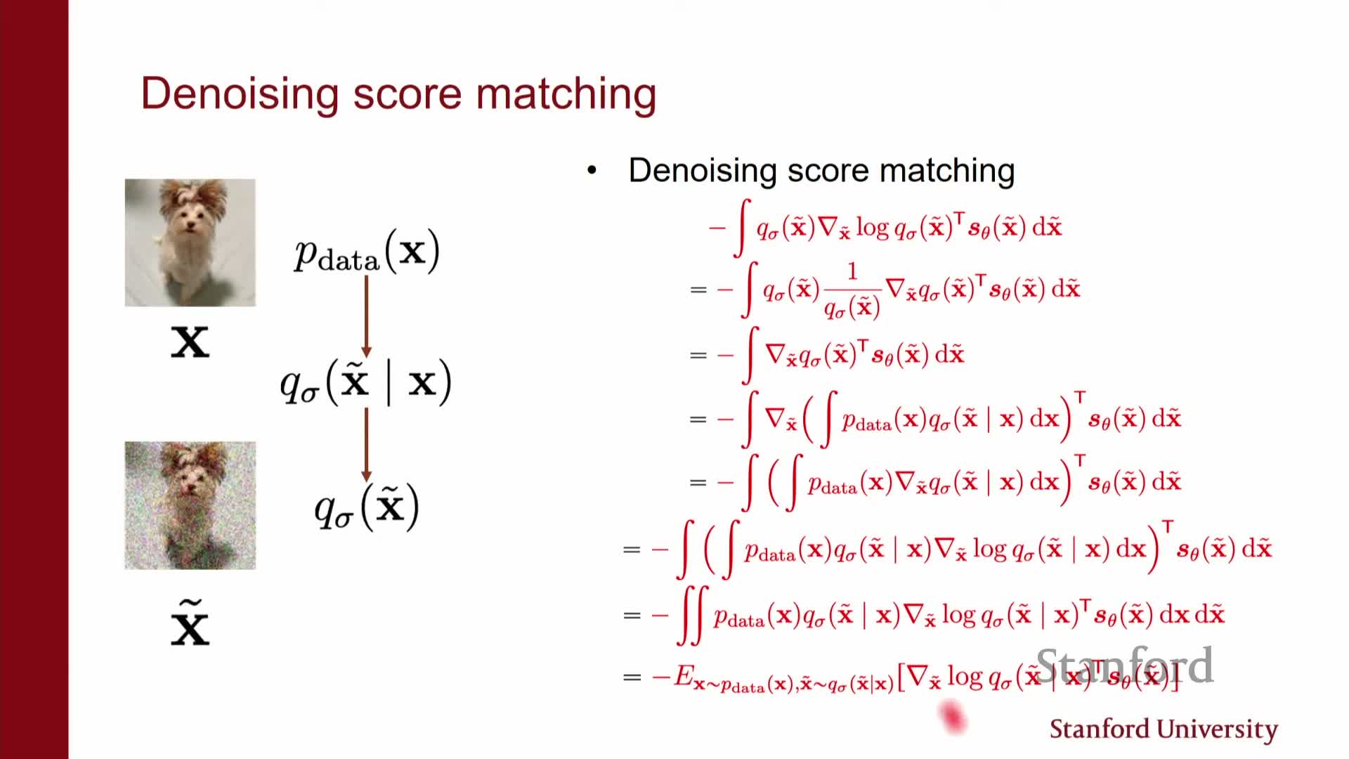 - Write the noisy marginal Q_sigma(x_tilde) as an integral over clean data x and exchange gradients with the integral.