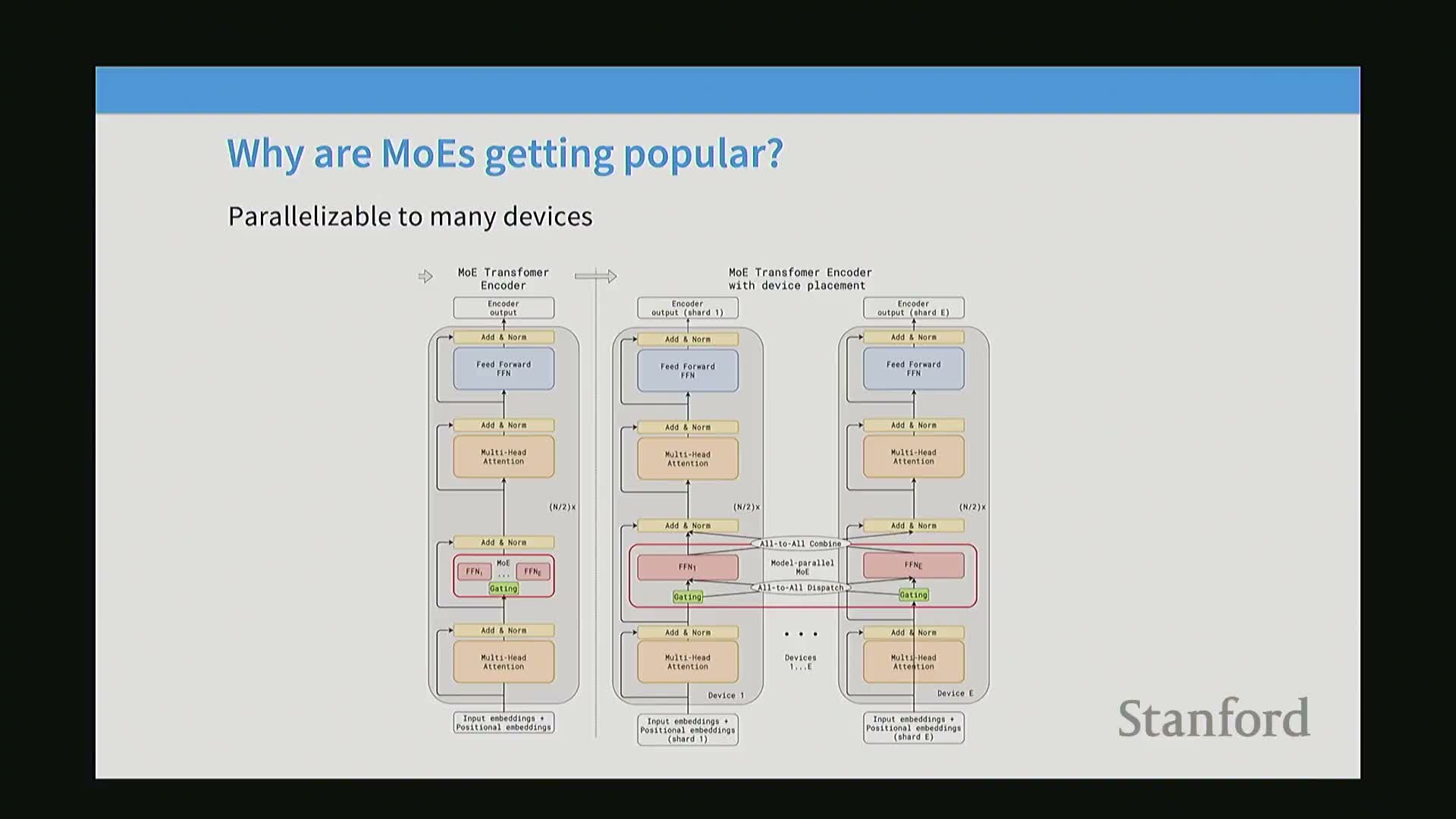 - Because experts are sparsely activated, only devices hosting selected experts participate for a given token set, yielding parallelism beyond data and tensor/model parallelism.
