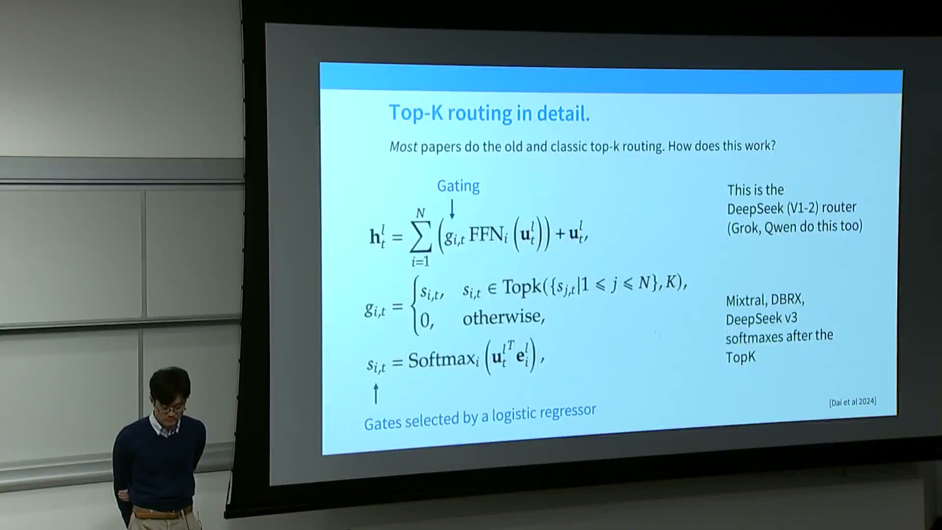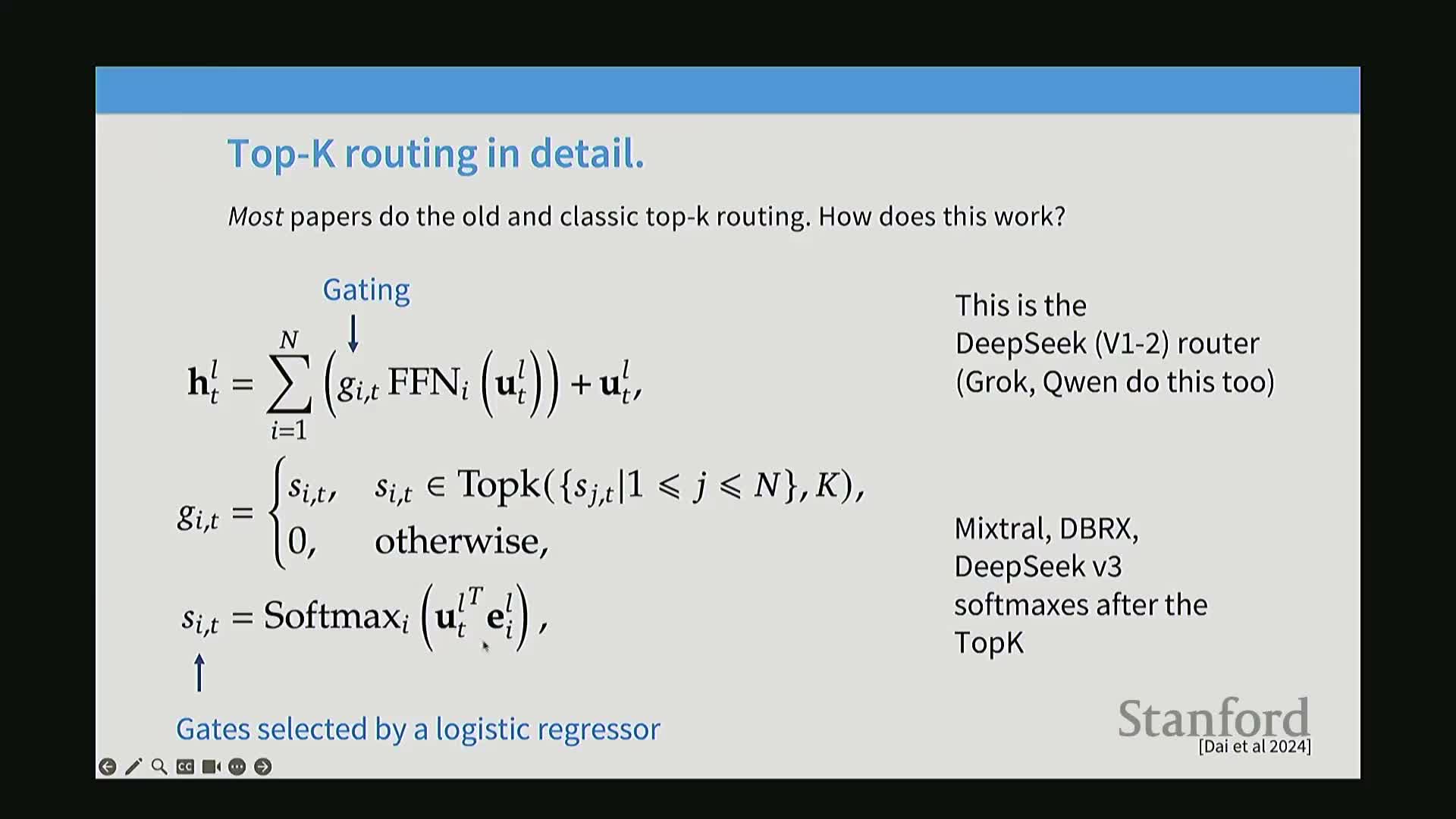 - Implementations vary on normalization (before or after top-k) and whether to use softmax or sigmoids, which affects numerical behavior and system sparsity.