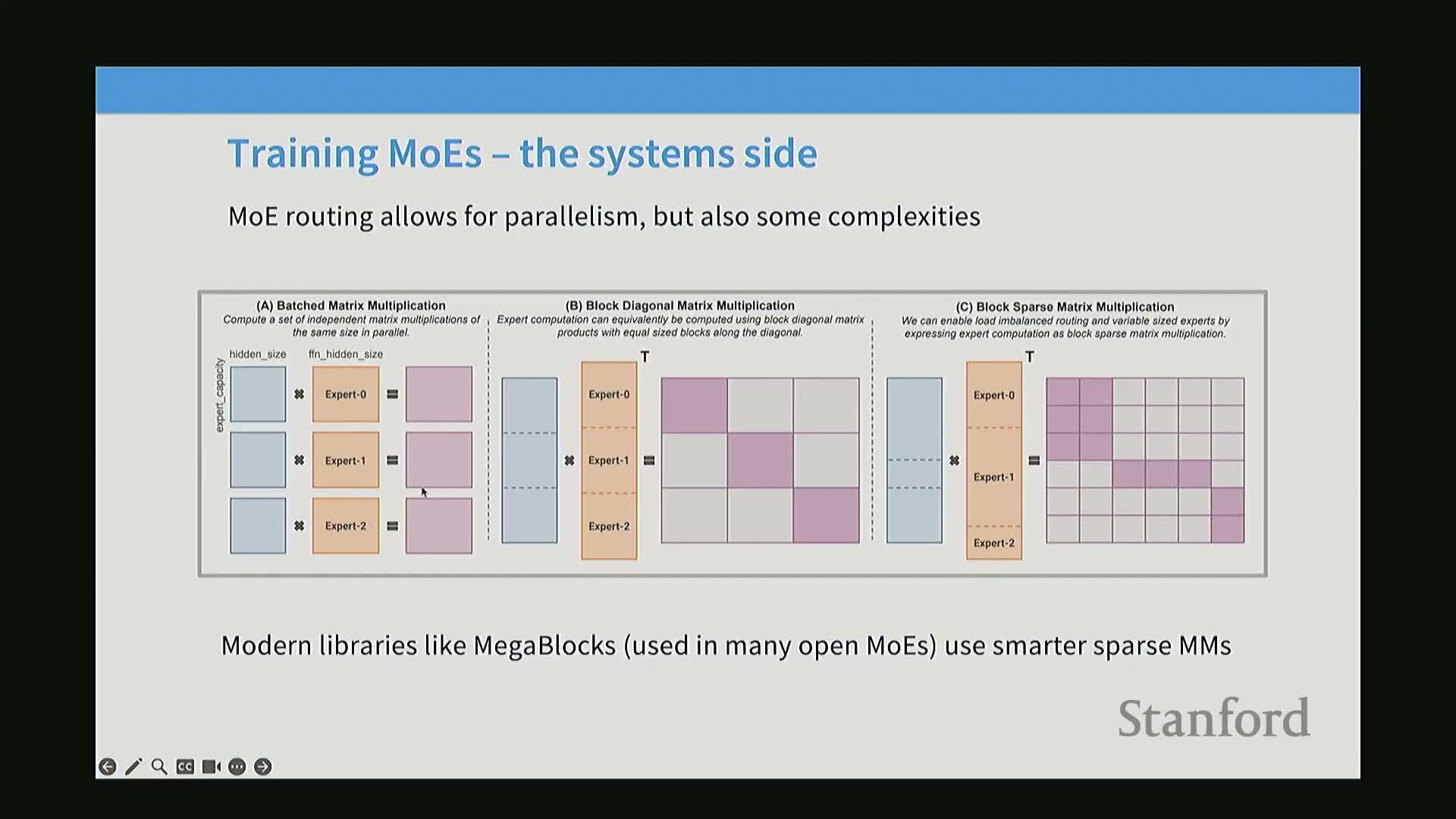 - Practical variants balance training stability, train/infer FLOP constraints, and device communication patterns.