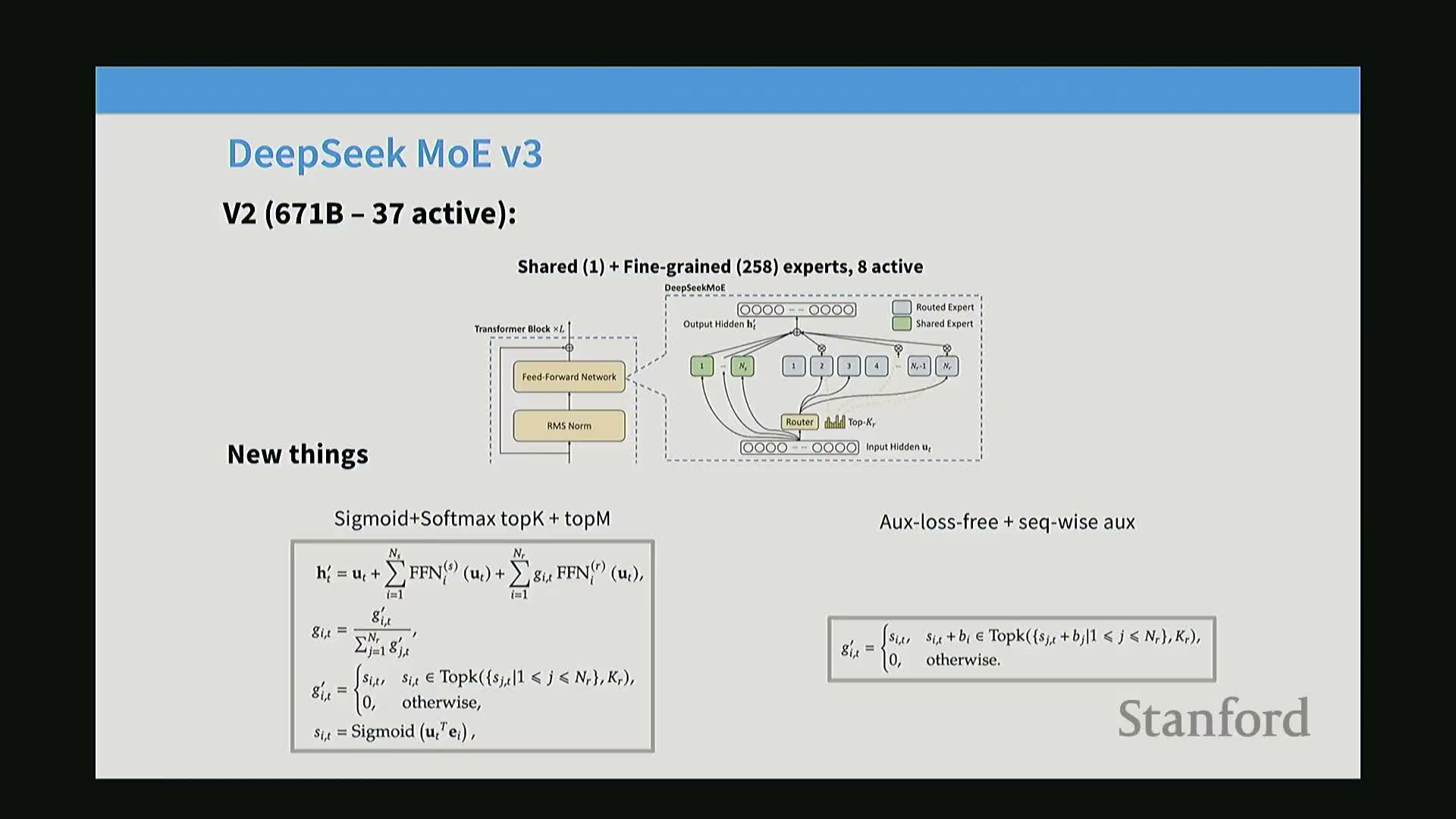 - Learned per-expert bias offsets for auxiliary-loss-free balancing
