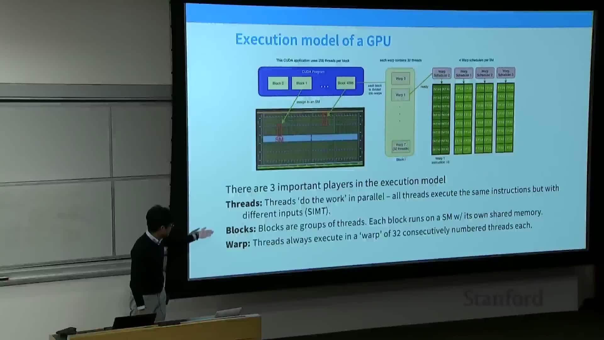 SM-local fast memory vs. slower global memory — locality and proximity drive performance.