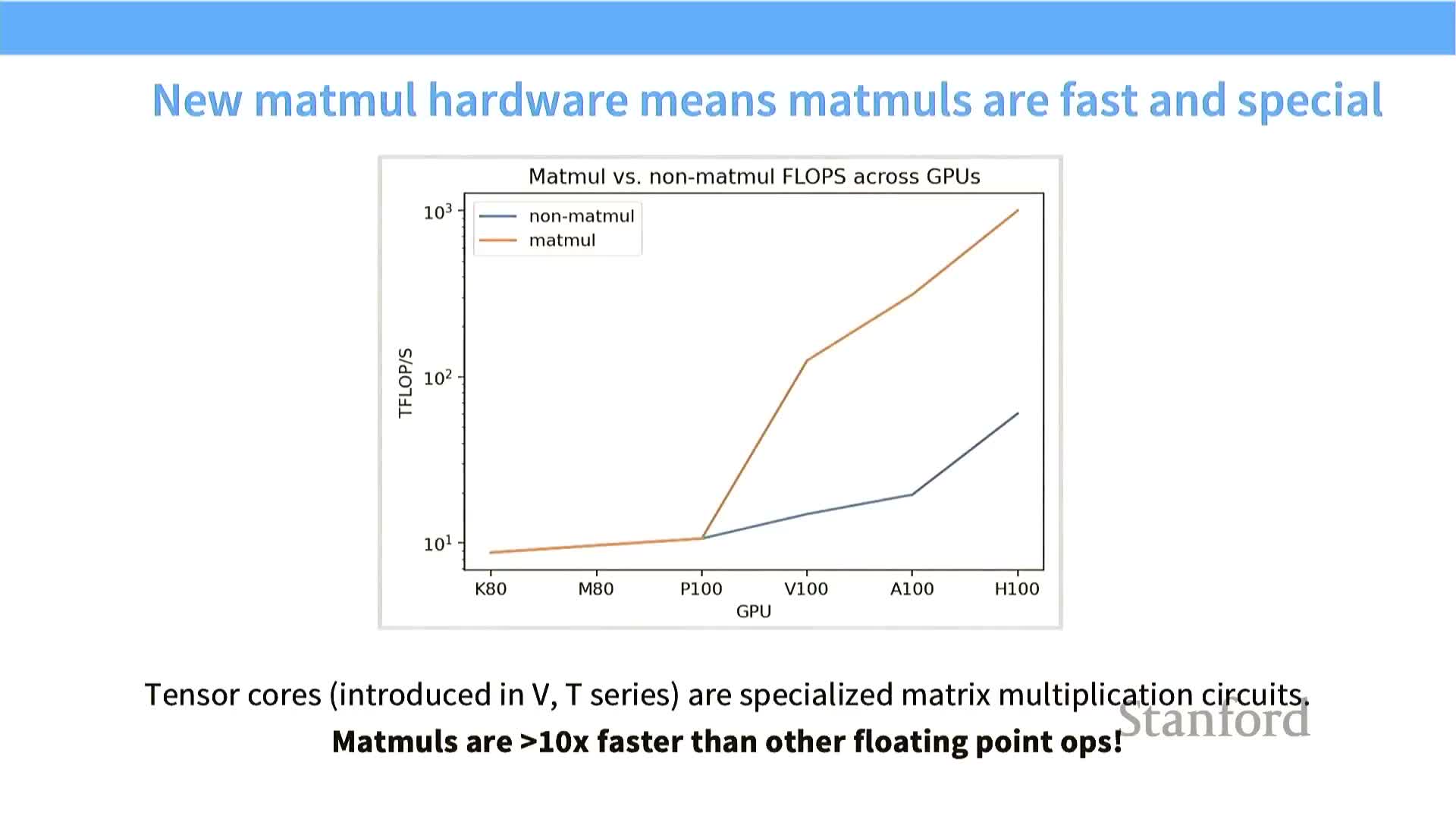 Hardware preference for matrix multiplies — matrix-friendly code maps best to peak throughput.