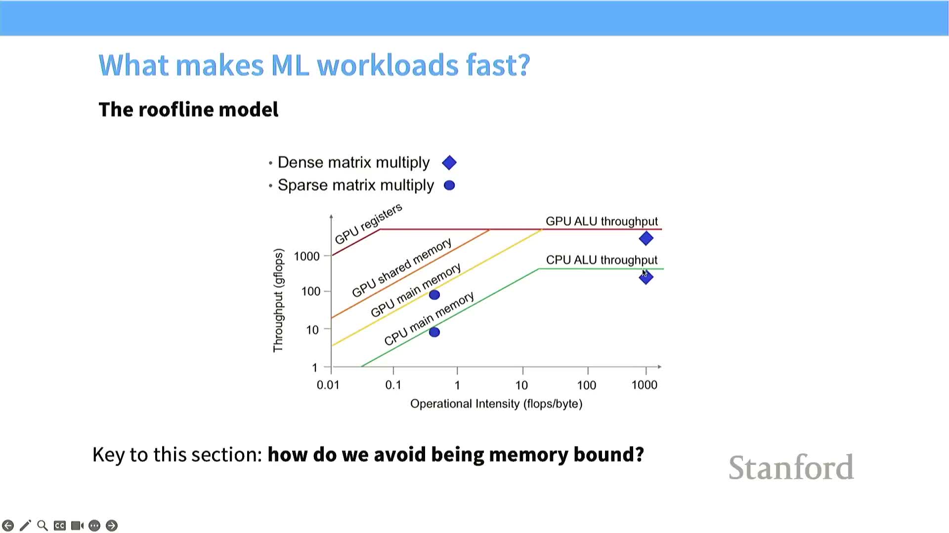 Collectively, these strategies increase arithmetic intensity and move kernels toward the compute-bound roofline.