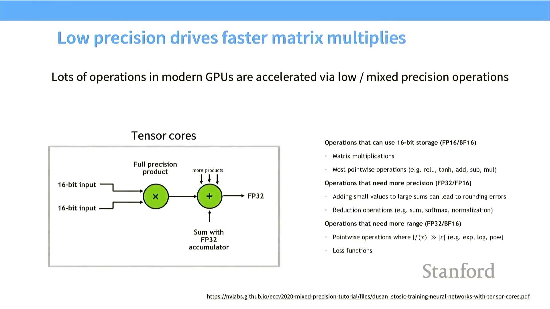 When memory is the bottleneck, moving to lower-precision representations often yields large throughput gains with modest algorithmic changes and careful numerical engineering.