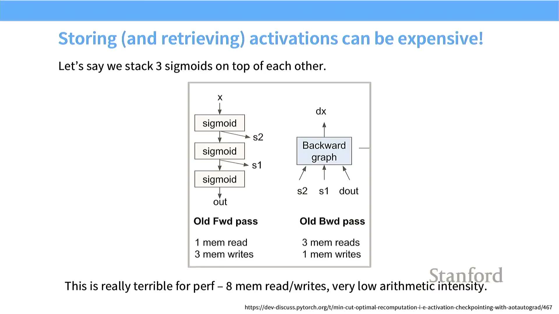 Trade compute for memory with recomputation/checkpointing when DRAM is the bottleneck.