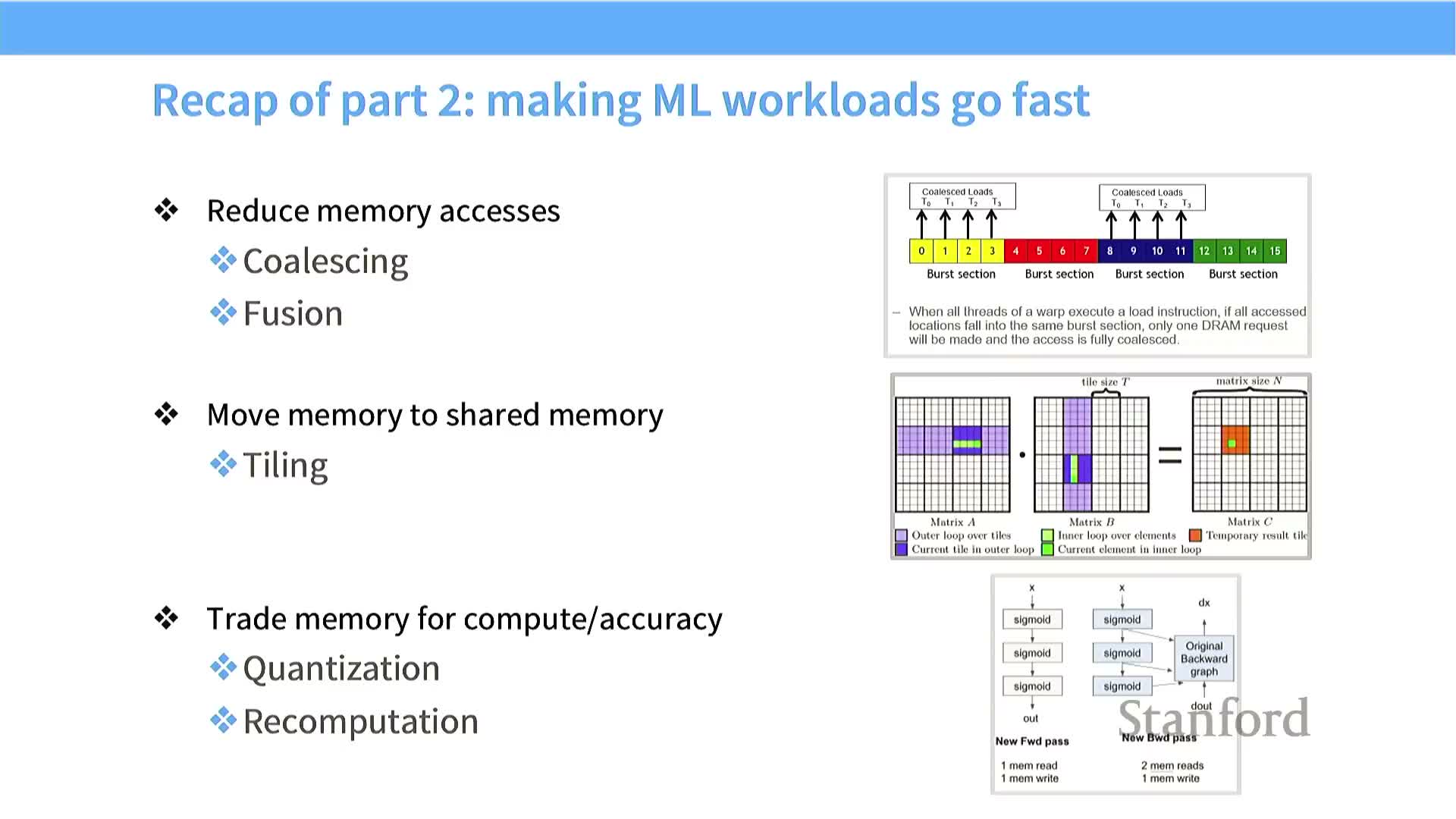 - End-to-end performance is increasingly determined by how efficiently an algorithm moves data between DRAM and on-chip buffers, not just raw FLOPS.