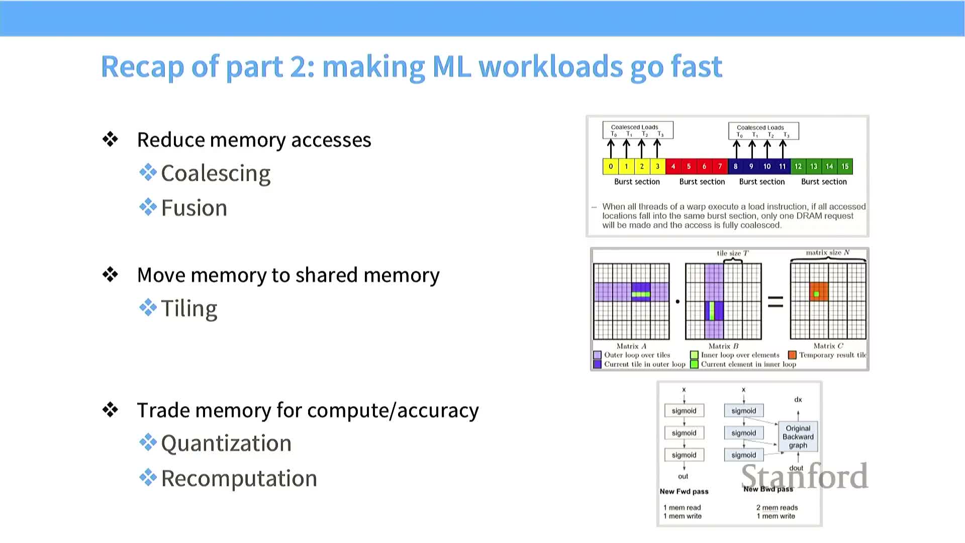 - Trade extra FLOPS for reduced DRAM traffic and memory footprint.
