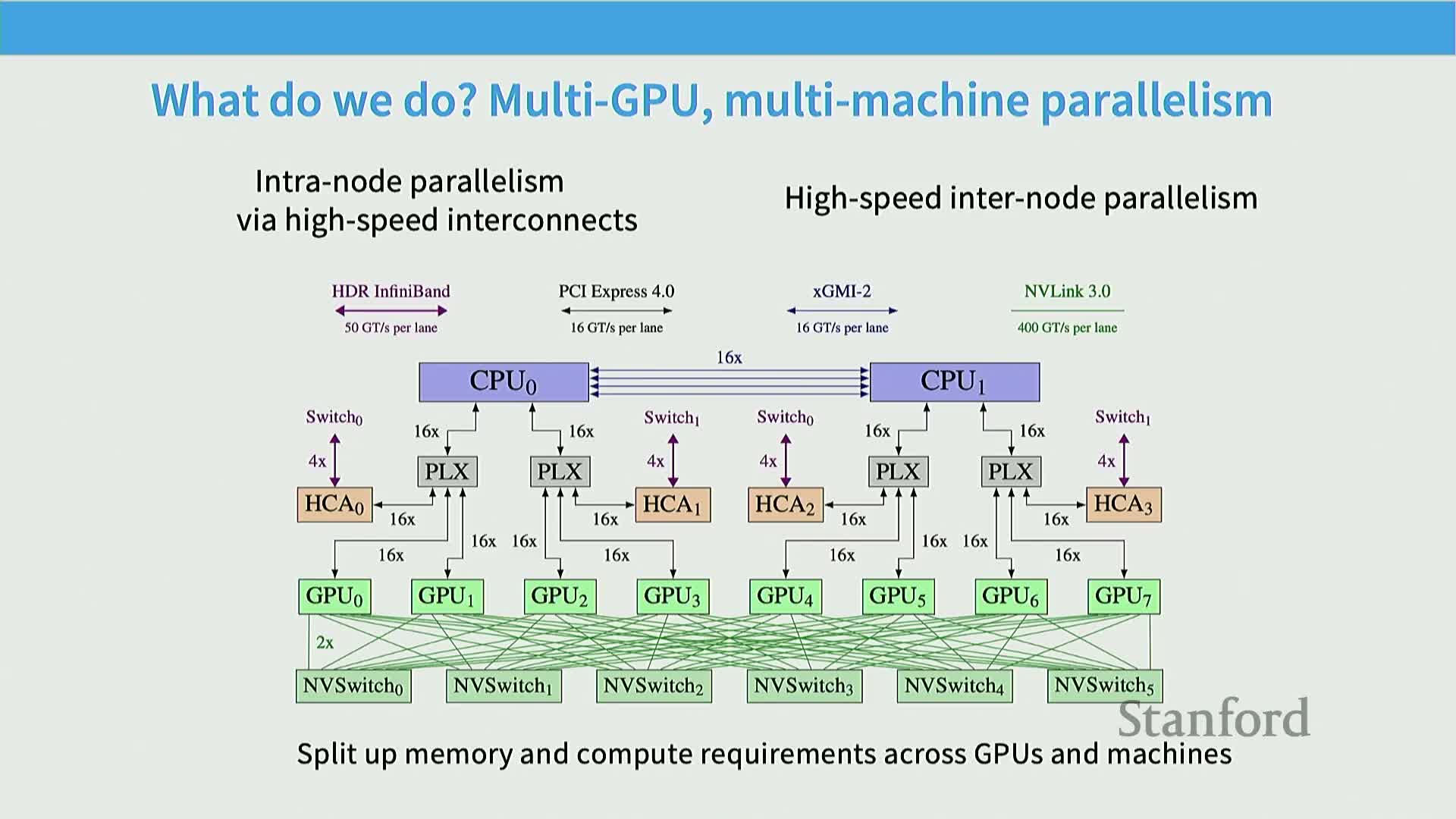 - Hardware hierarchy and interconnect tiers influence parallelization choices