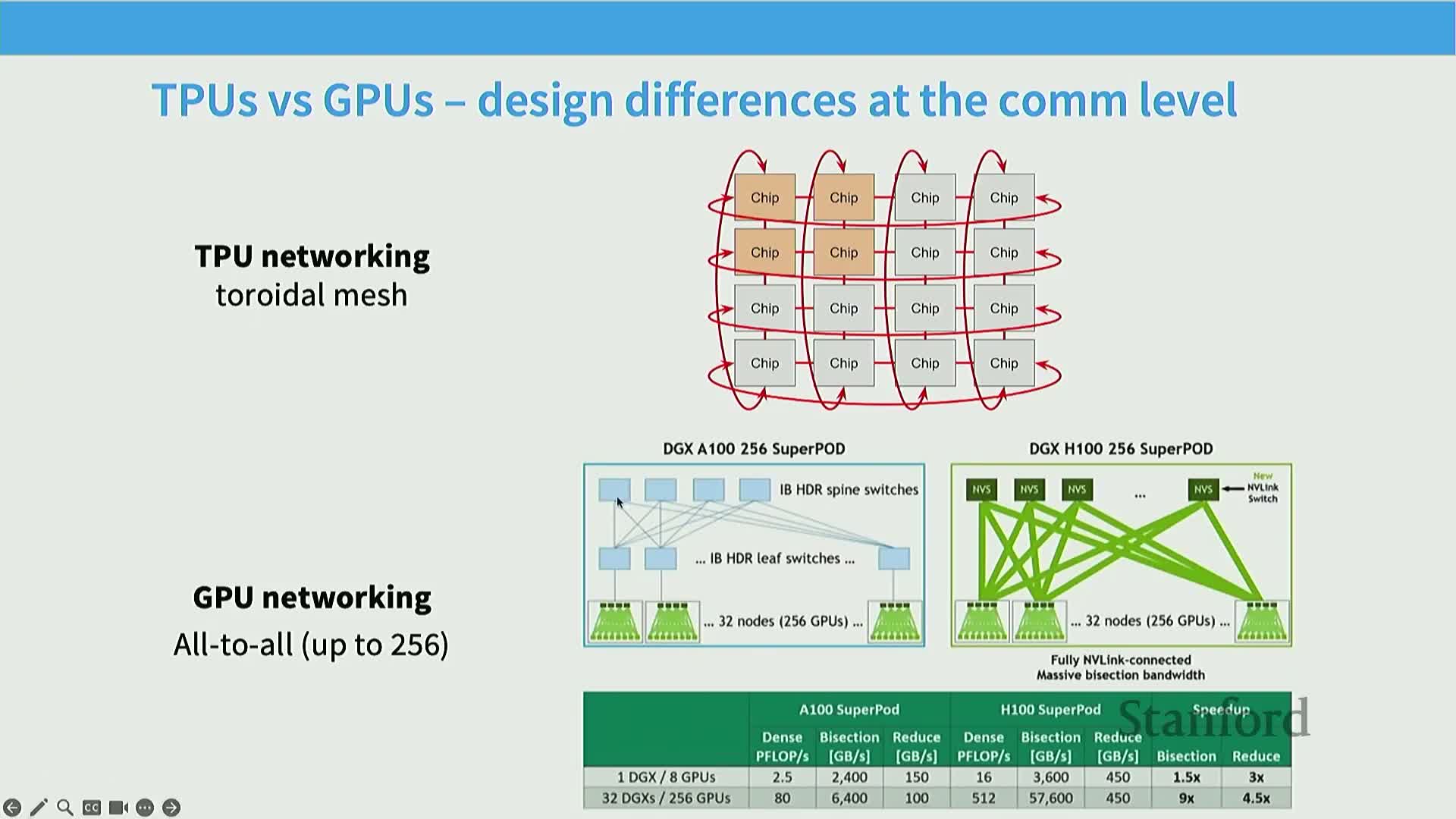 TPU-based systems (e.g., GMA2): leverage toroidal mesh networking to expand model-parallel extents.