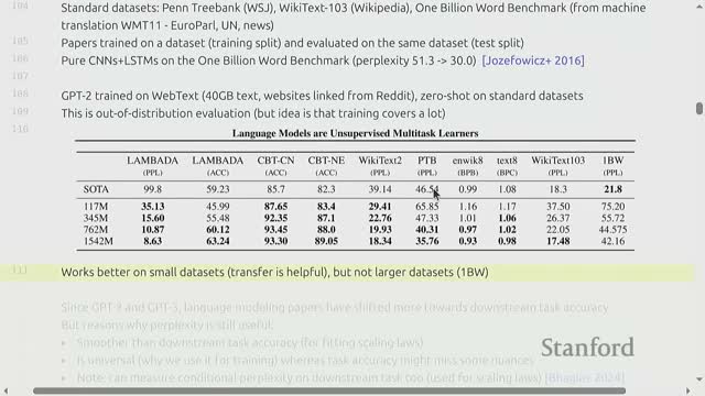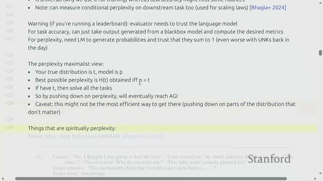 - Minimizing perplexity can prioritize many low‑impact tokens rather than task‑specific behaviors, so it is not perfectly predictive of all downstream task performance.