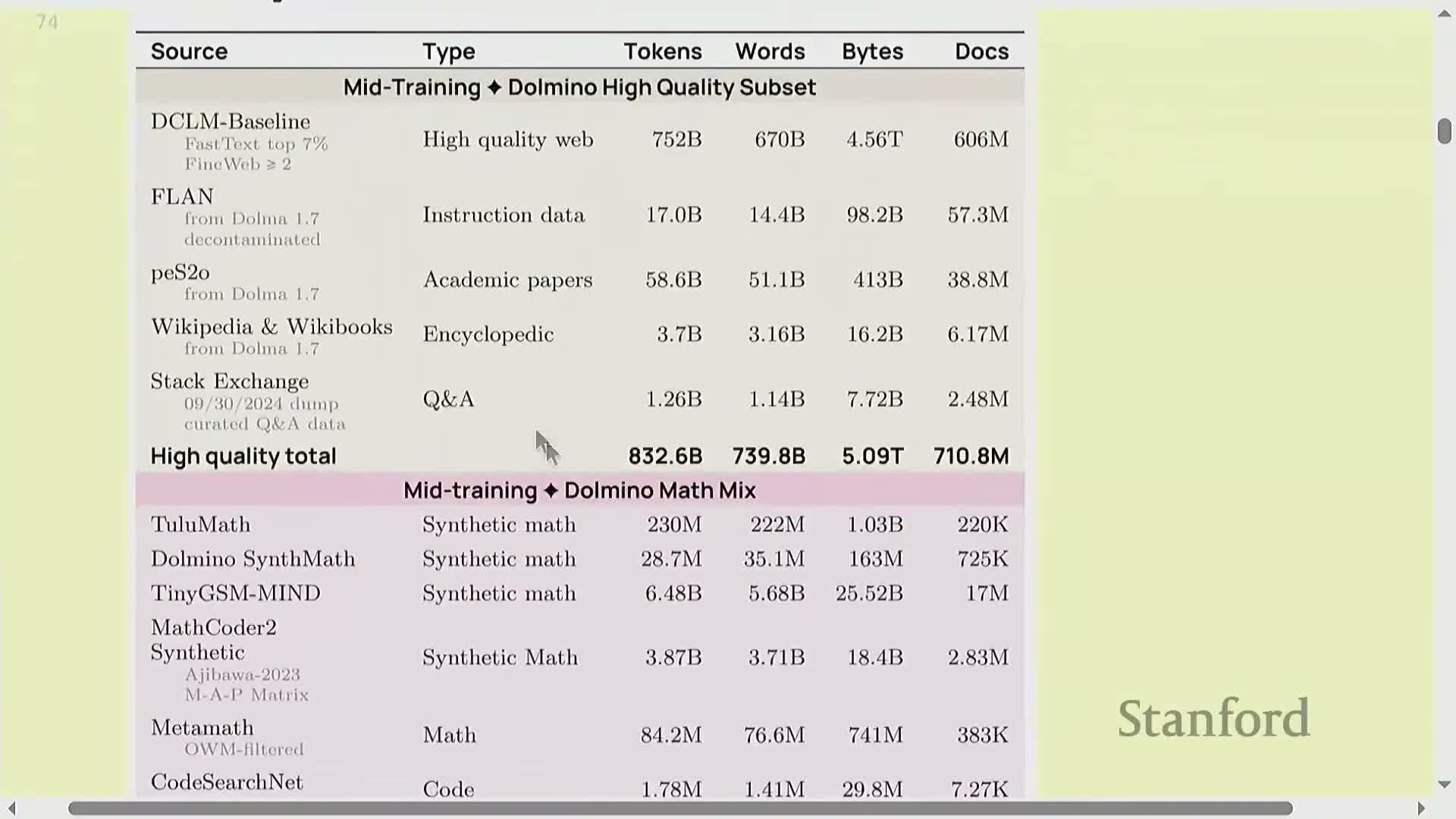 - Massive pre‑training mixes dominated by web crawls plus books, code, academic papers, math, and Wikipedia.