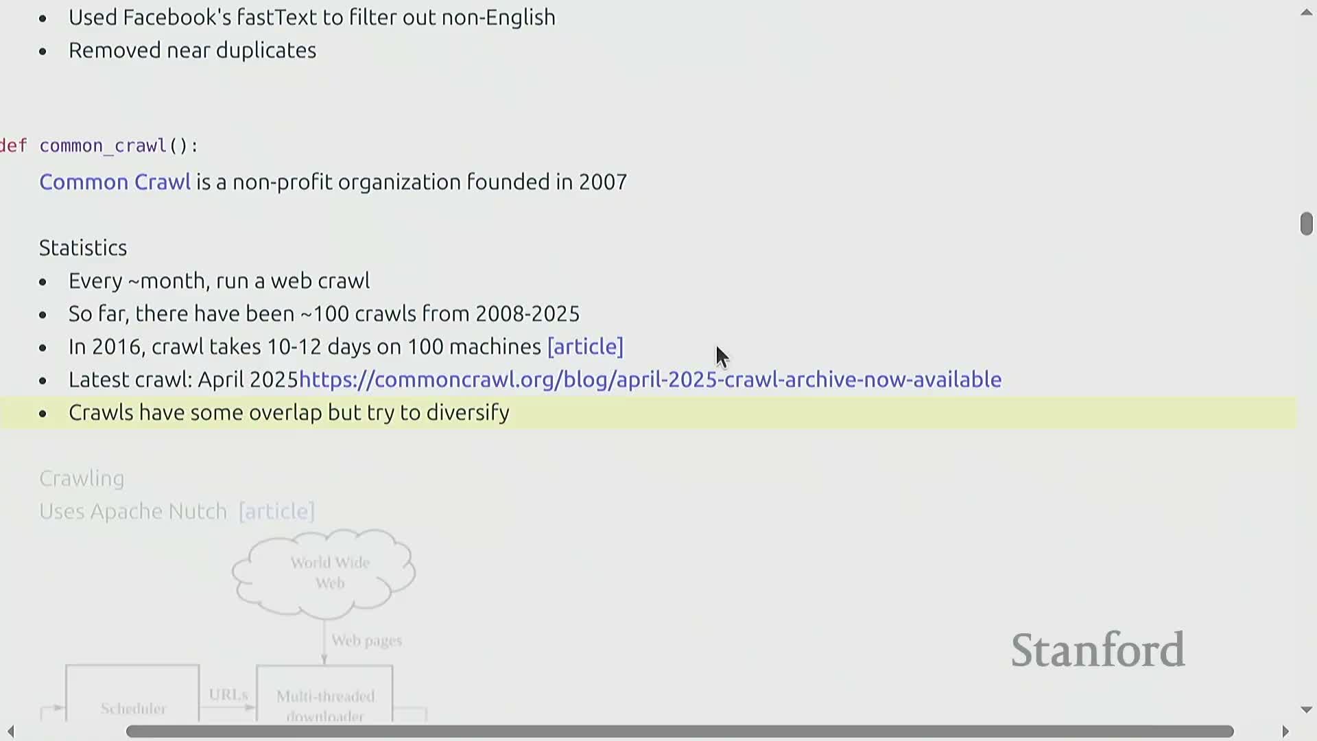 - Major model developers often run bespoke crawlers beyond Common Crawl.