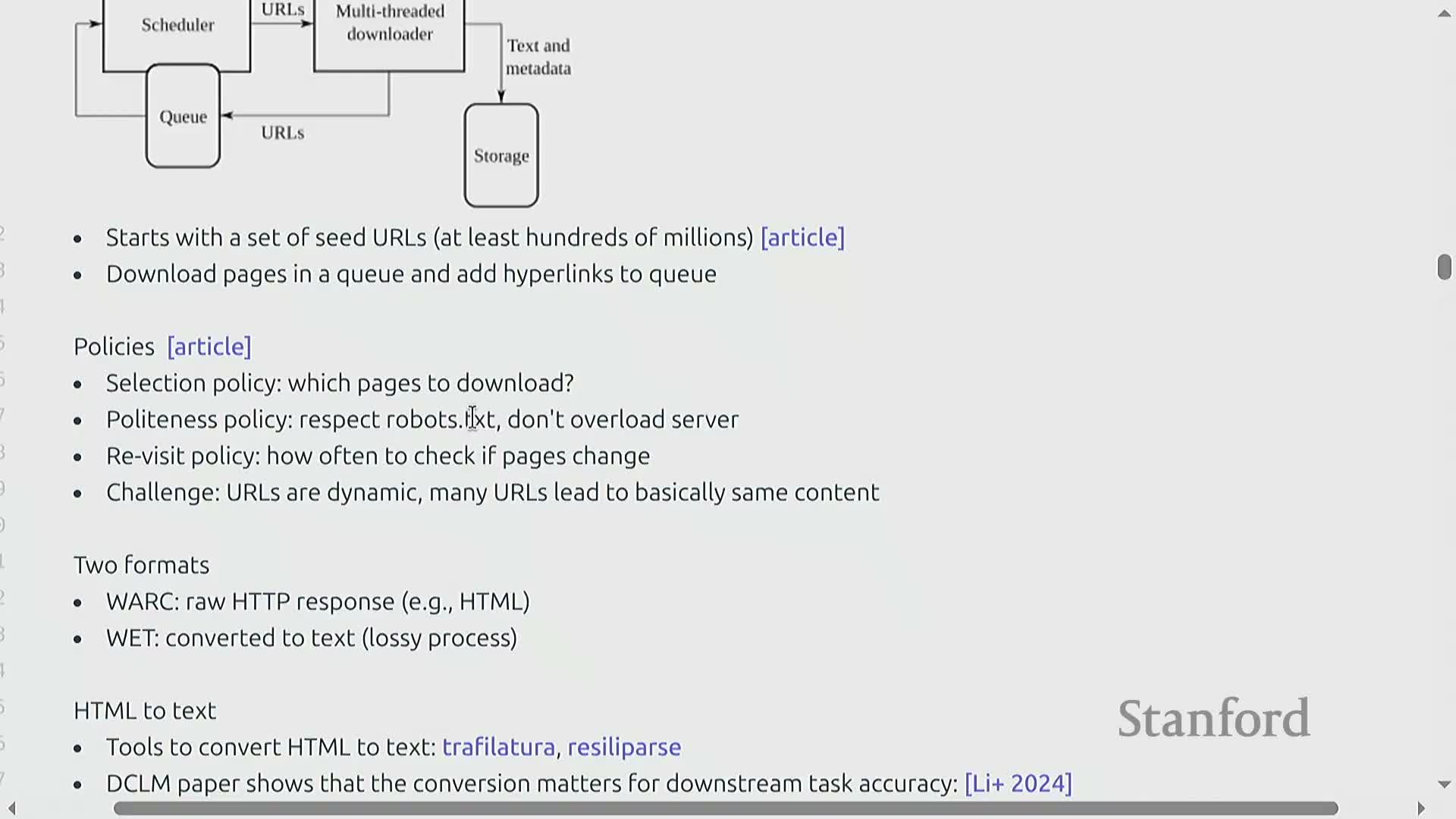 - Common Crawl provides large monthly web snapshots but requires extensive processing