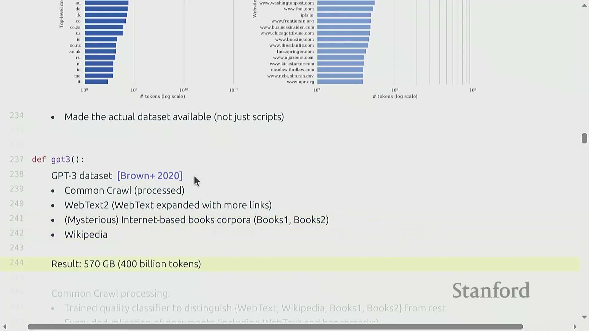 - GPT-3 used a mixture of Common Crawl, filtered web text, books, and Wikipedia with a learned quality classifier