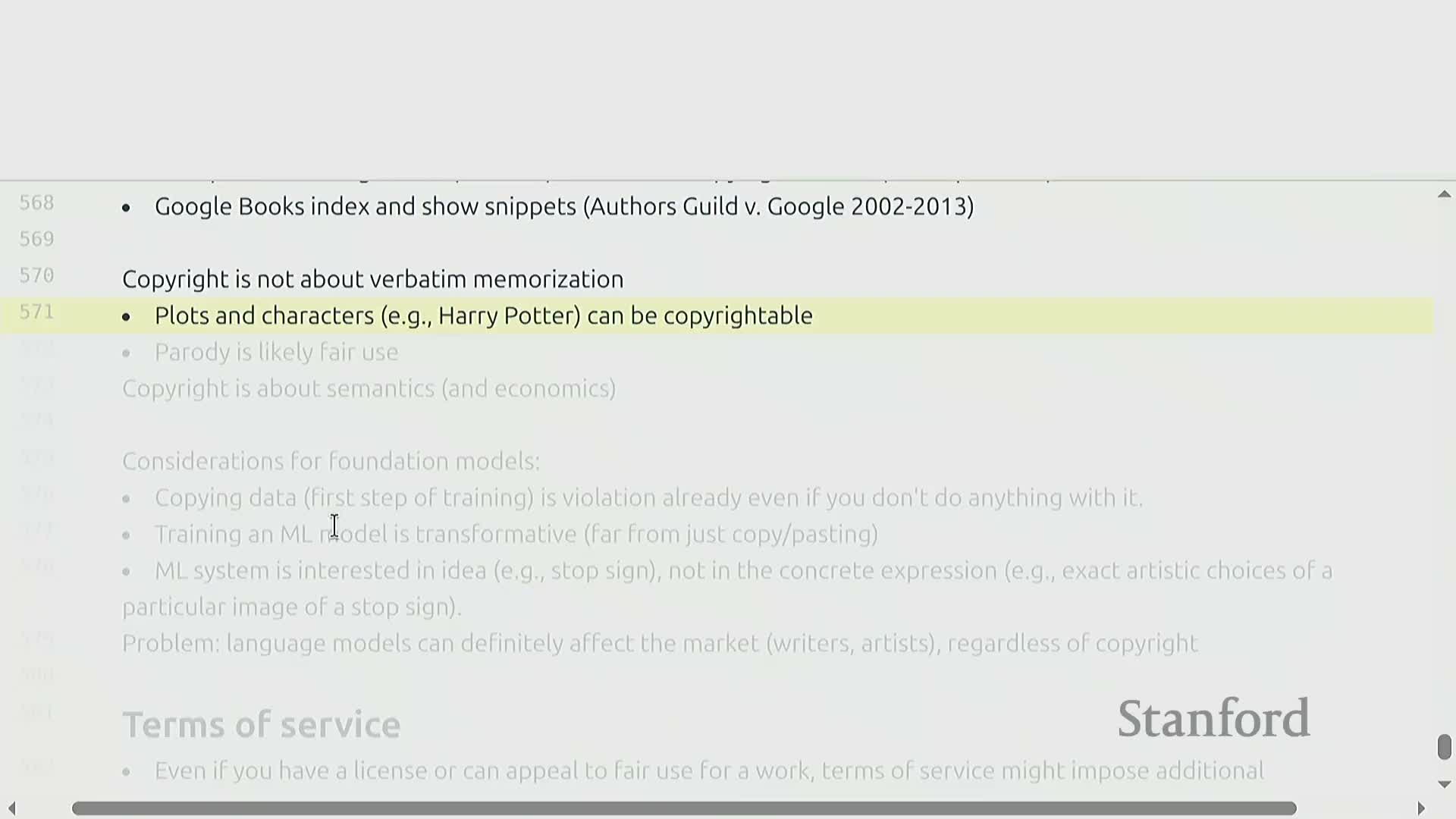 - Training models on copyrighted content raises complex legal and technical issues including memorization and transformative use arguments