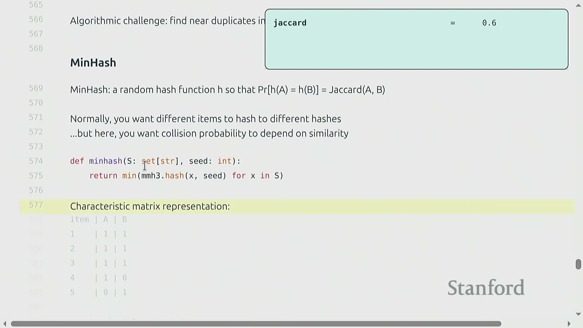 - Similarity measures, MinHash and probabilistic reduction of Jaccard