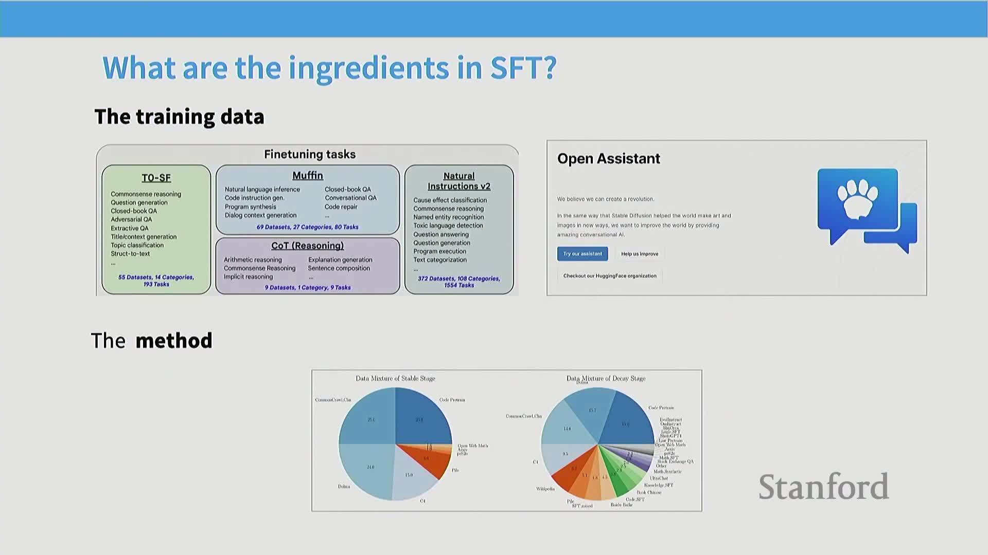 This segment contrasts two other paradigms: OpenAssistant and Alpaca.