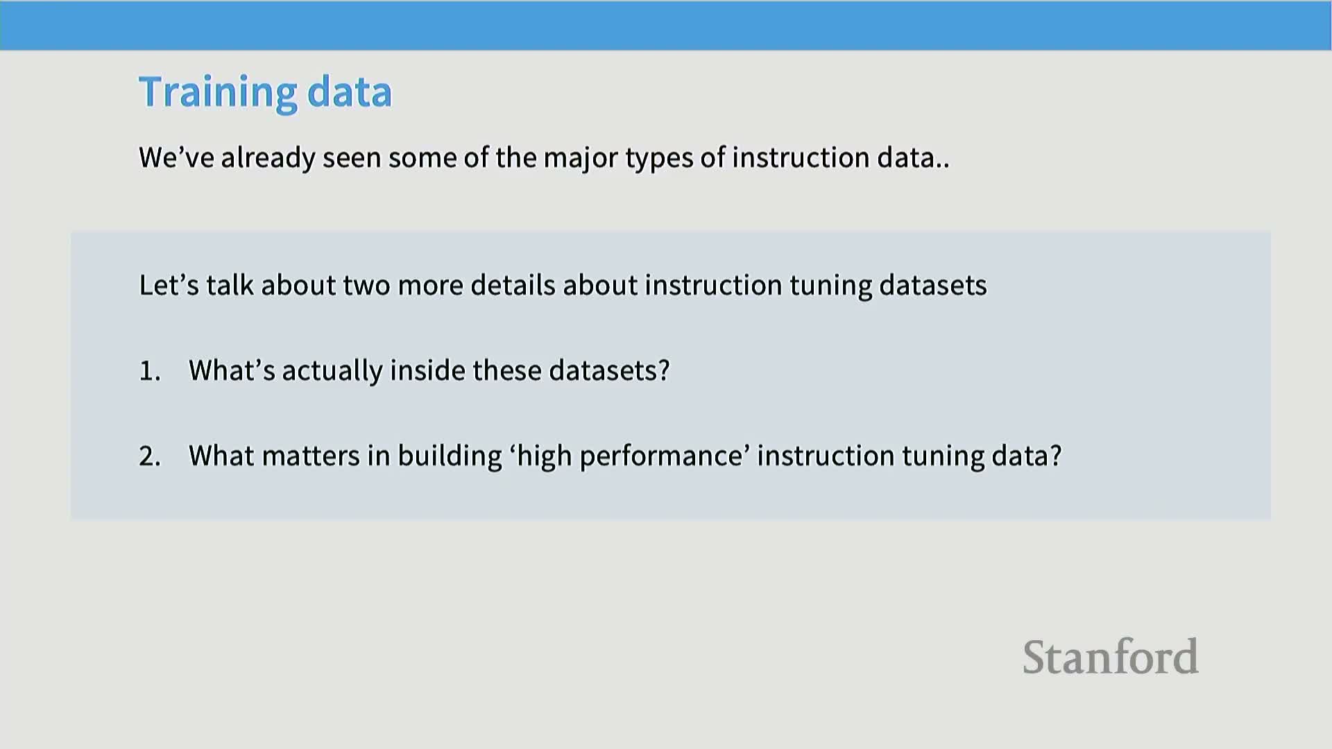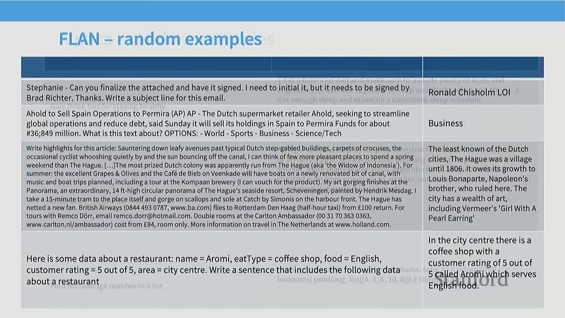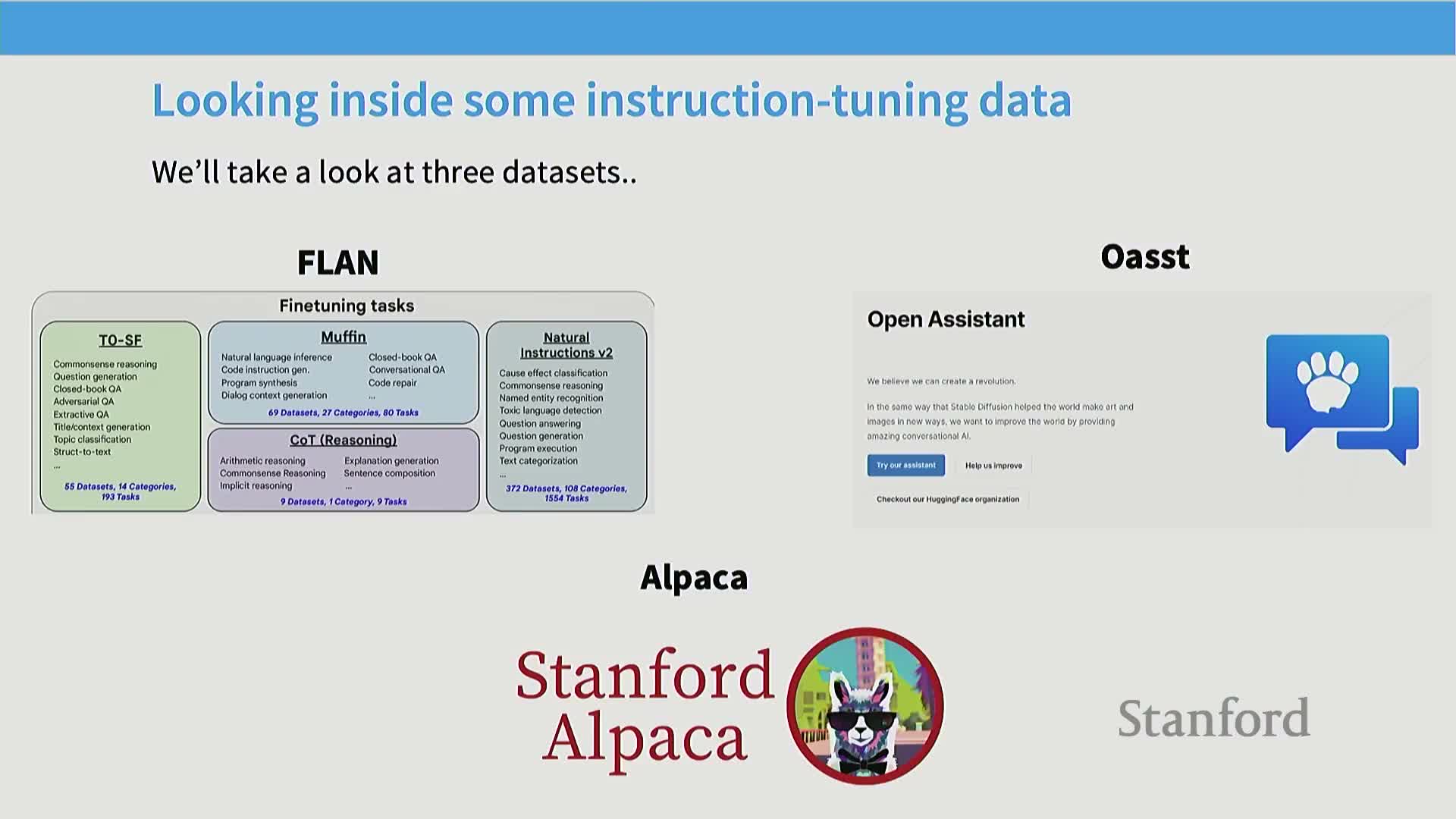 - FLAN dataset paradigm: aggregating existing NLP datasets