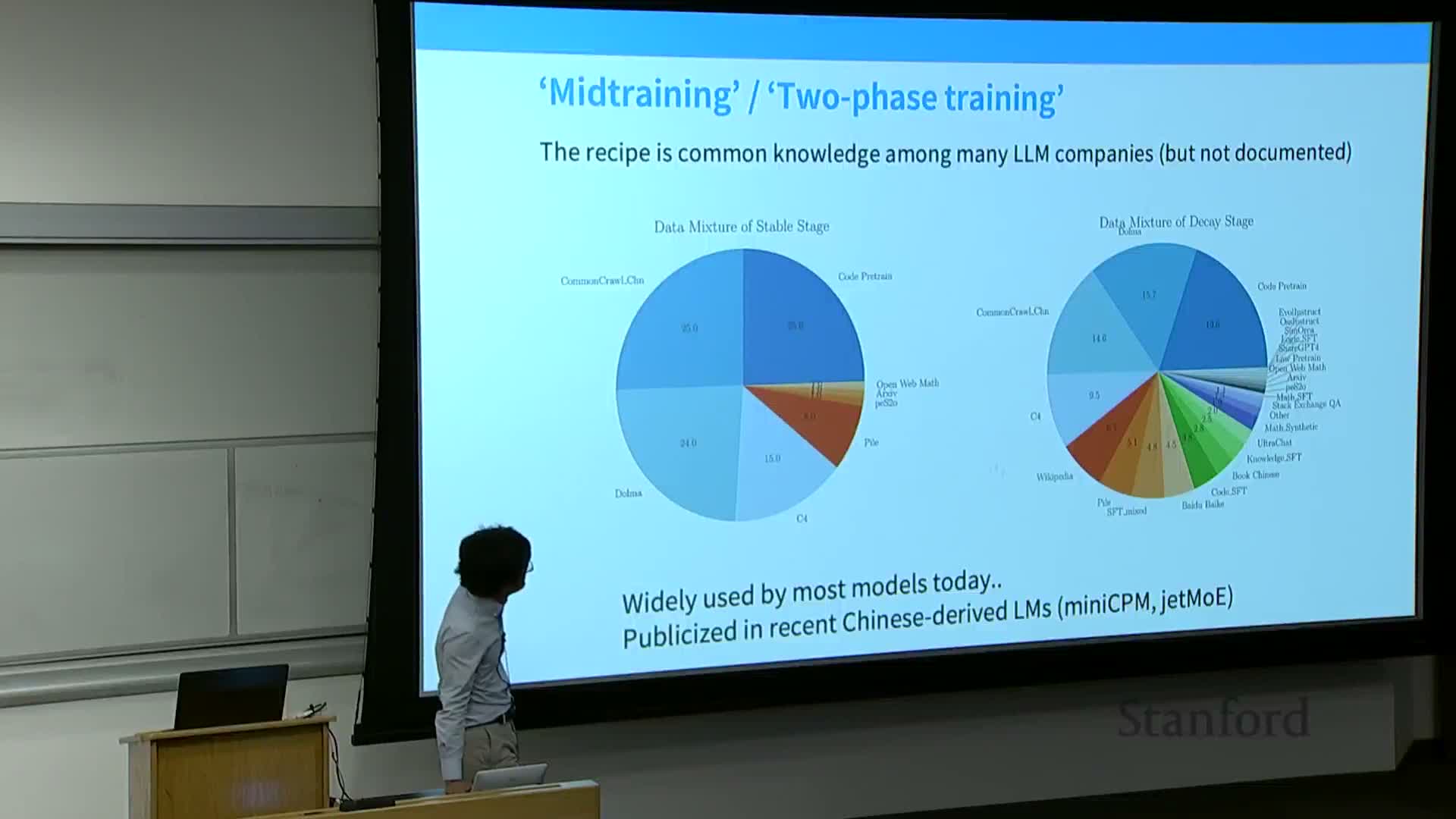 This segment argues that post-training data matters more than ever due to small-data, high-leverage effects: noisy instruction-tuning data can provably harm model behavior and desirable behaviors must be encoded precisely.