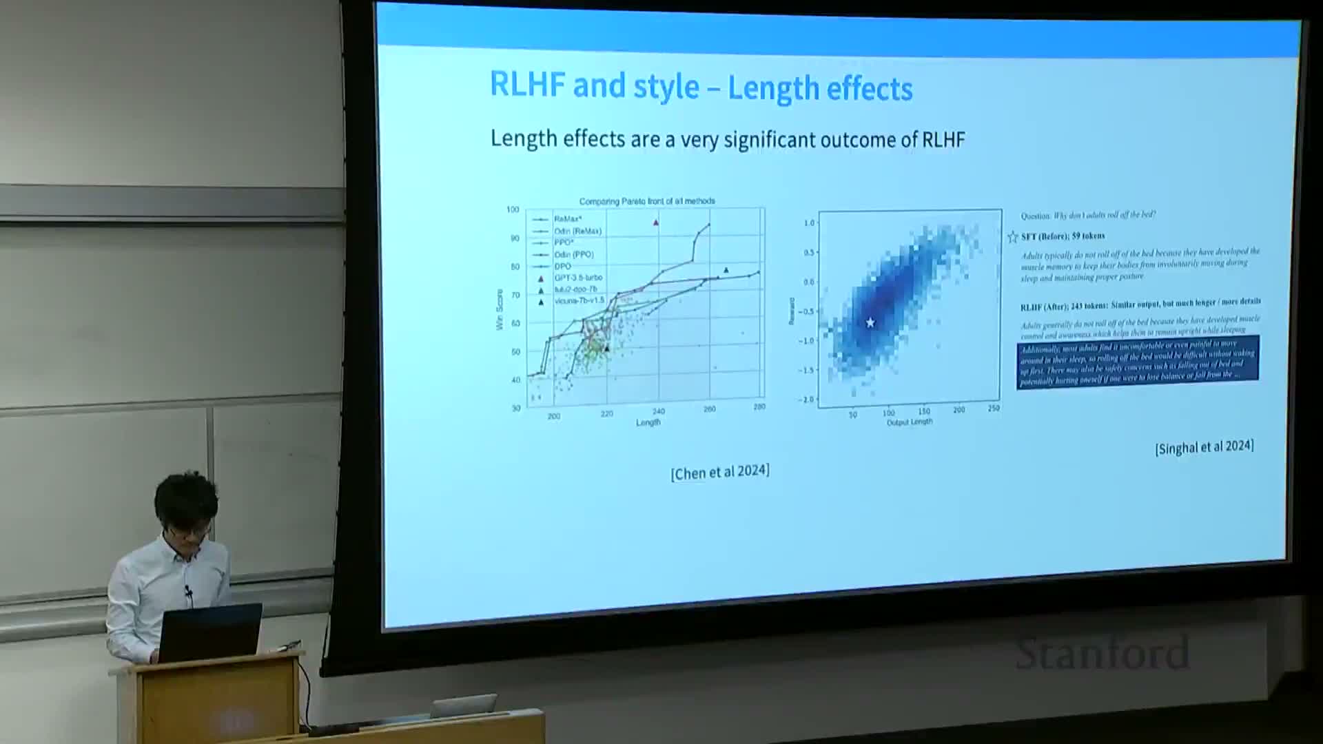 Warning: a dominant confound is that both human preferences and automated judges correlate with output length, causing reward signals to favor verbosity unless explicitly controlled.